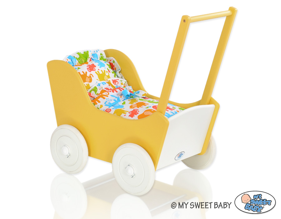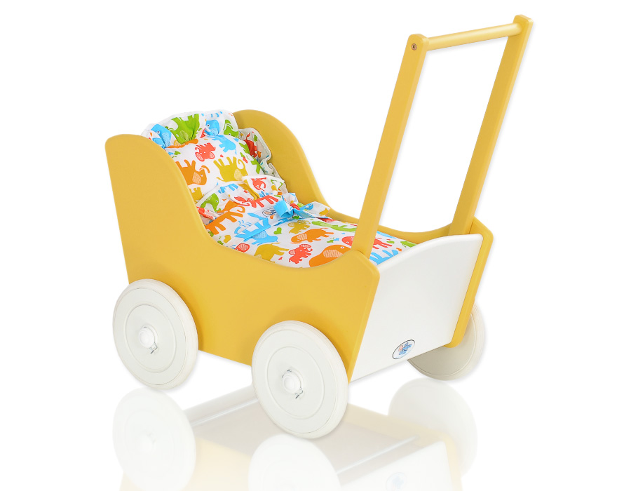 Puppenwagen Mila Gelb Weiß 145026-735 Ein wundervoller Spiel - Puppenwagen perfekt als Geschenk geeignet.Der Wagen ist aus sicheren Materialien gefertigt.