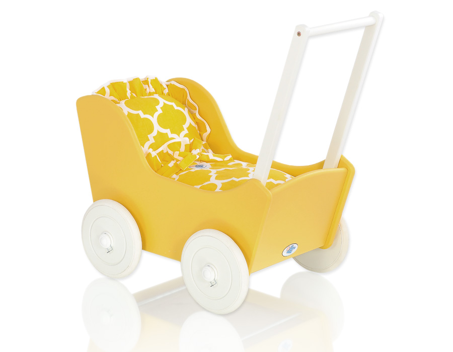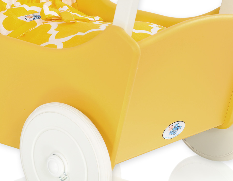 Puppenwagen Mila Gelb Weiß 145027-723 Ein wundervoller Spiel - Puppenwagen perfekt als Geschenk geeignet.Der Wagen ist aus sicheren Materialien gefertigt.