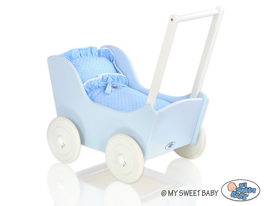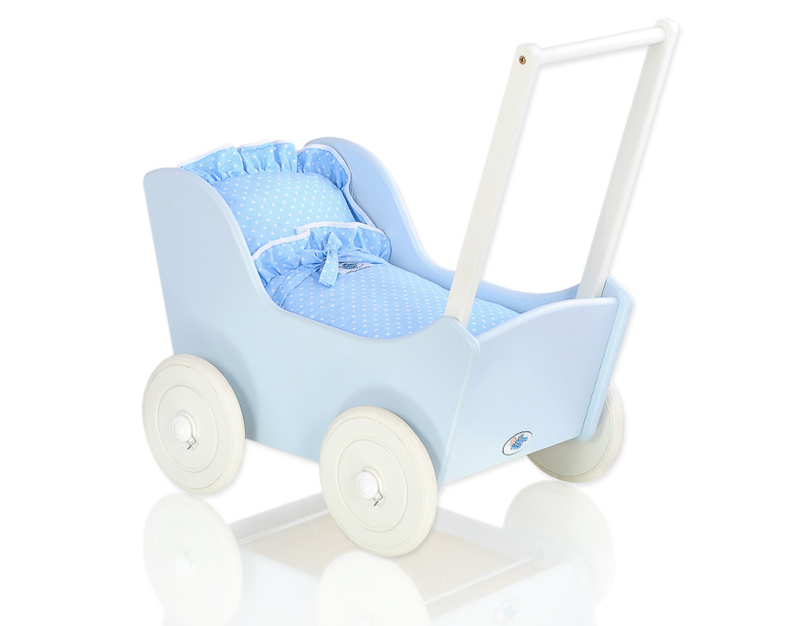 Stubenwagen » Spielzeug Kuscheltiere » Puppenwagen und Spielzeug » Puppenwagen aus Holz » Blau Puppenwagen aus Holz » Puppenwagen Mila Weiß Blau 35027-588