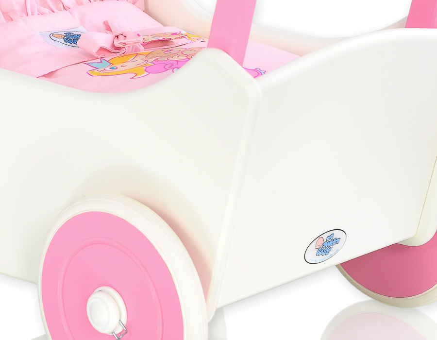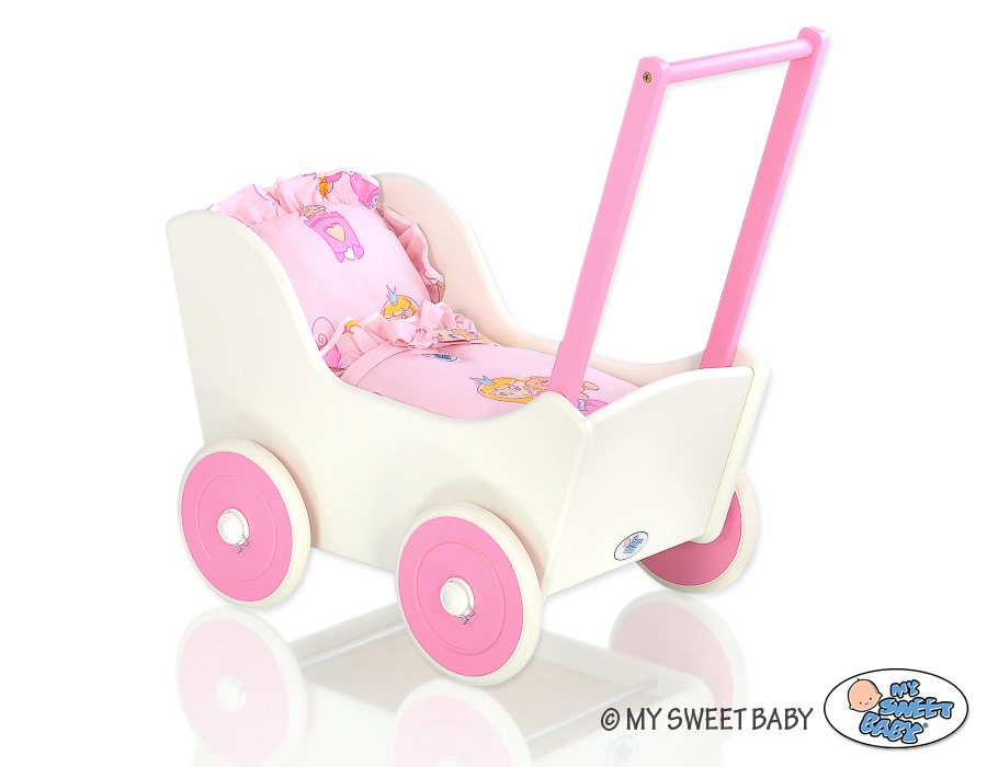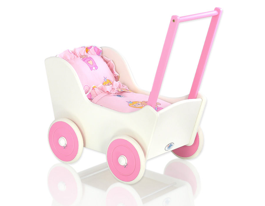 Stubenwagen » Spielzeug Kuscheltiere » Puppenwagen und Spielzeug » Puppenwagen aus Holz » Puppenwagen aus Holz Dunkelrosa » Puppenwagen Mila Weiß Fuchsie 55025-558