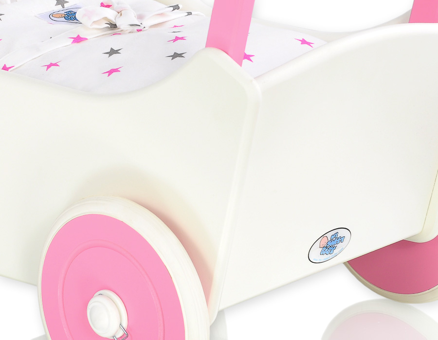 Puppenwagen Mila Weiß Fuchsie 55025-622 Ein wundervoller Spiel - Puppenwagen perfekt als Geschenk geeignet.Der Wagen ist aus sicheren Materialien gefertigt.
