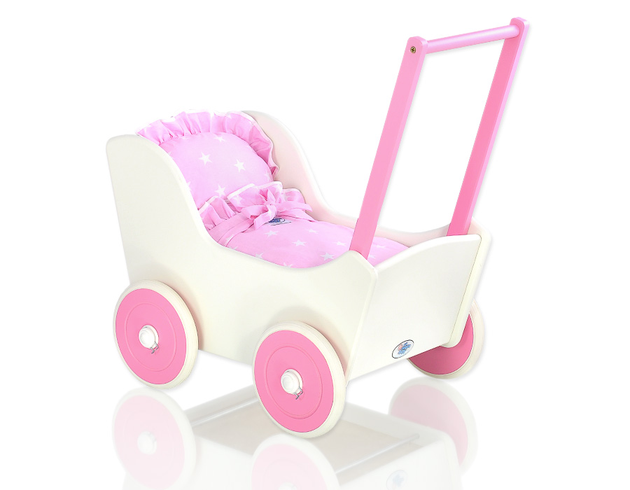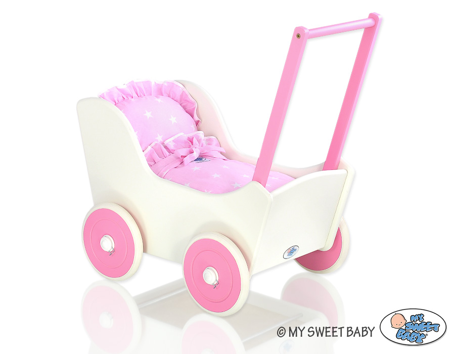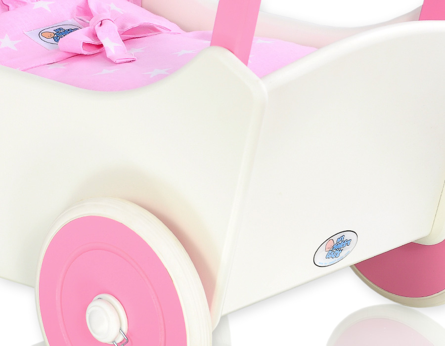 Stubenwagen » Spielzeug Kuscheltiere » Puppenwagen und Spielzeug » Puppenwagen aus Holz » Puppenwagen aus Holz Dunkelrosa » Puppenwagen Mila Weiß Fuchsie 55025-719