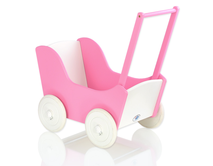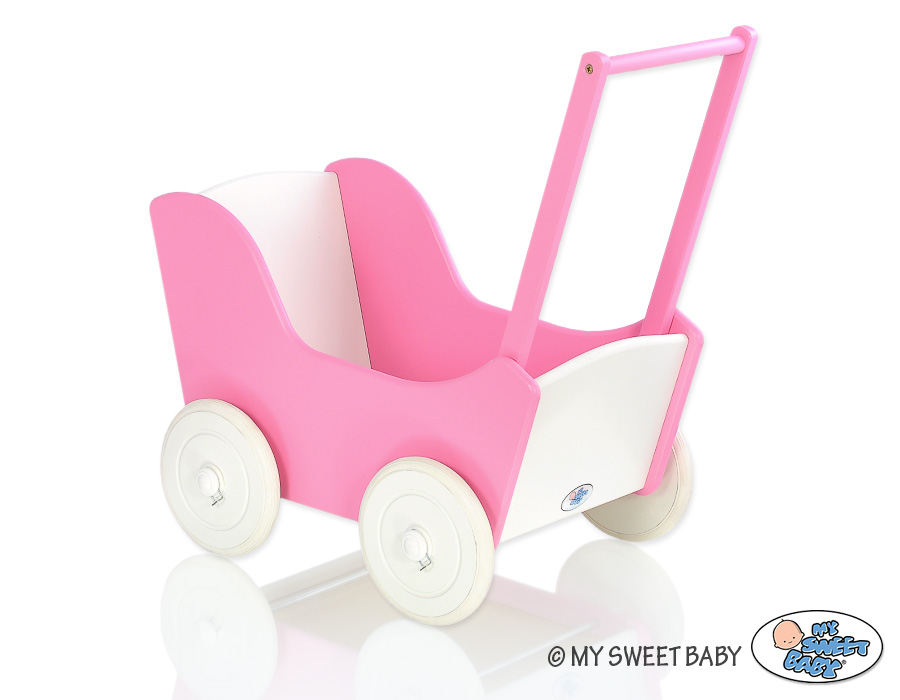 Stubenwagen » Spielzeug Kuscheltiere » Puppenwagen und Spielzeug » Puppenwagen aus Holz » Puppenwagen aus Holz Dunkelrosa » Puppenwagen Mila Weiß Fuchsie 55026