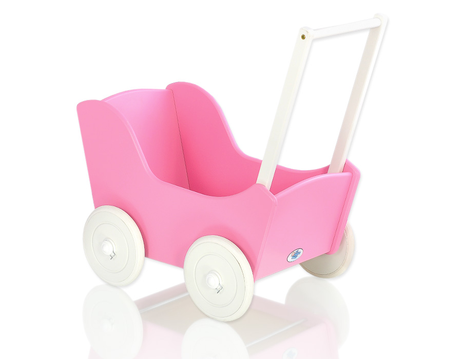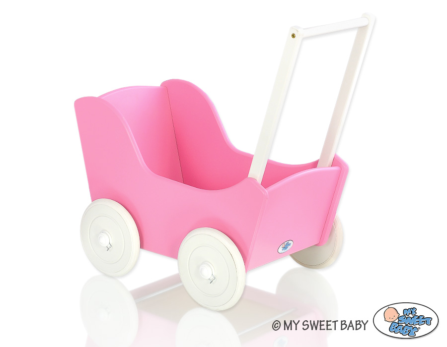 Stubenwagen » Spielzeug Kuscheltiere » Puppenwagen und Spielzeug » Puppenwagen aus Holz » Puppenwagen aus Holz Dunkelrosa » Puppenwagen Mila Weiß Fuchsie 55027