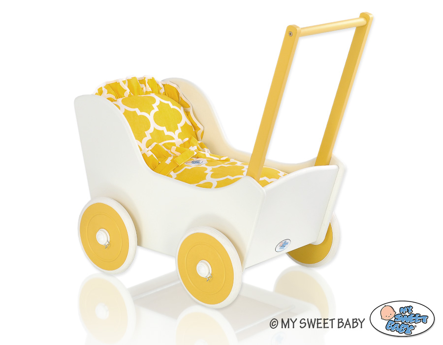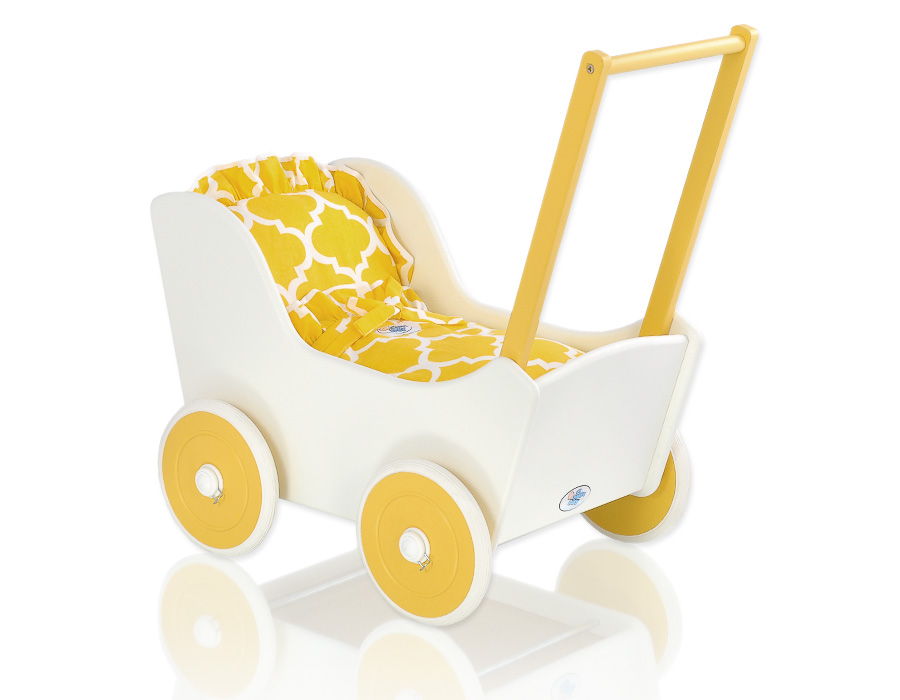 Puppenwagen Mila Weiß Gelb 145025-723 Ein wundervoller Spiel - Puppenwagen perfekt als Geschenk geeignet.Der Wagen ist aus sicheren Materialien gefertigt.