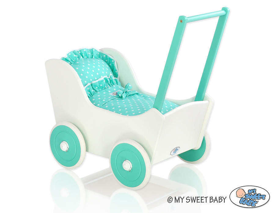 Puppenwagen Mila Weiß Minze 25025-585 Ein wundervoller Spiel - Puppenwagen perfekt als Geschenk geeignet.Der Wagen ist aus sicheren Materialien gefertigt.