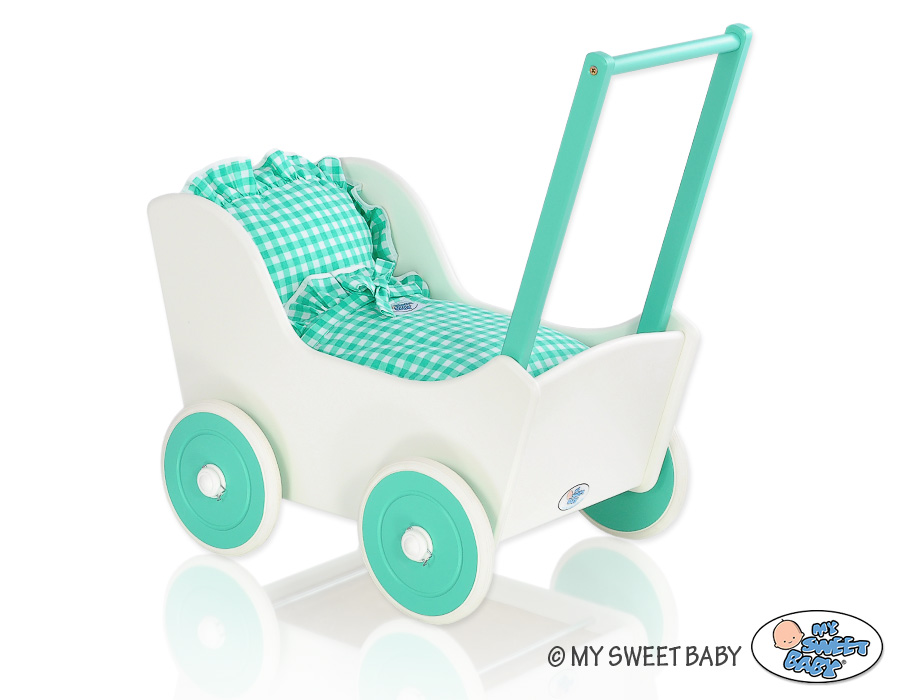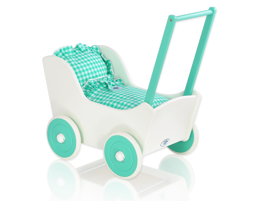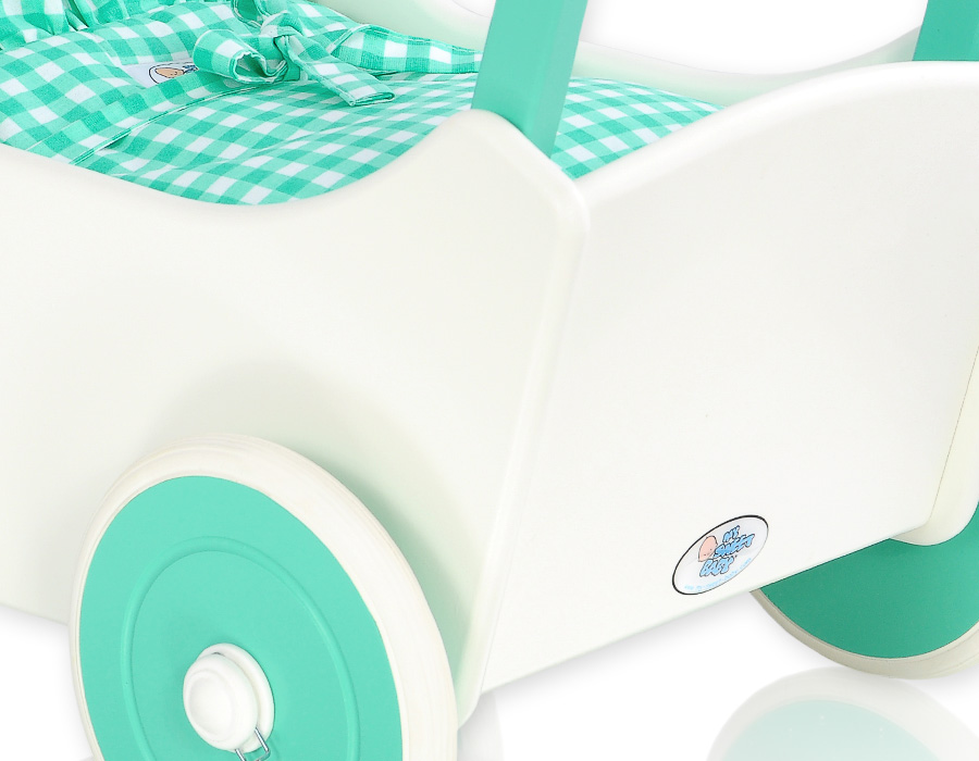 Stubenwagen » Spielzeug Kuscheltiere » Puppenwagen und Spielzeug » Puppenwagen aus Holz » Puppenwagen aus Holz Farbe Minze » Puppenwagen Mila Weiß Minze 25025-621