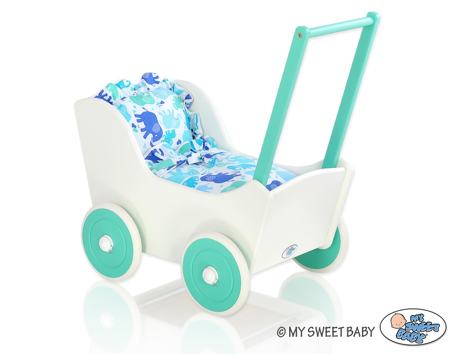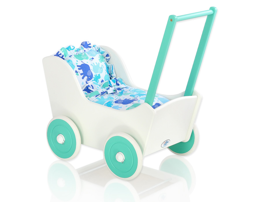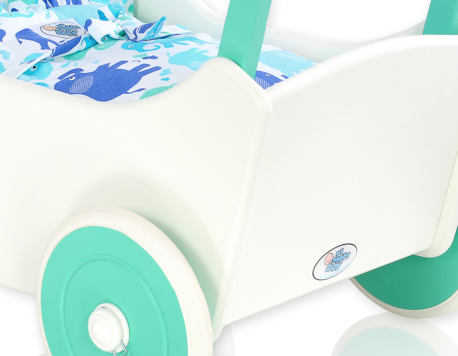 Stubenwagen » Spielzeug Kuscheltiere » Puppenwagen und Spielzeug » Puppenwagen aus Holz » Puppenwagen aus Holz Farbe Minze » Puppenwagen Mila Weiß Minze 25025-734
