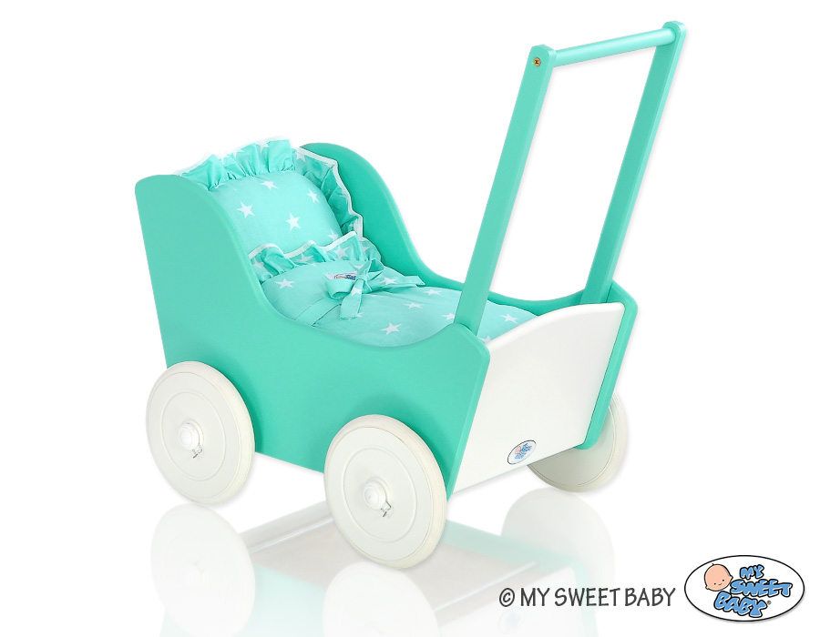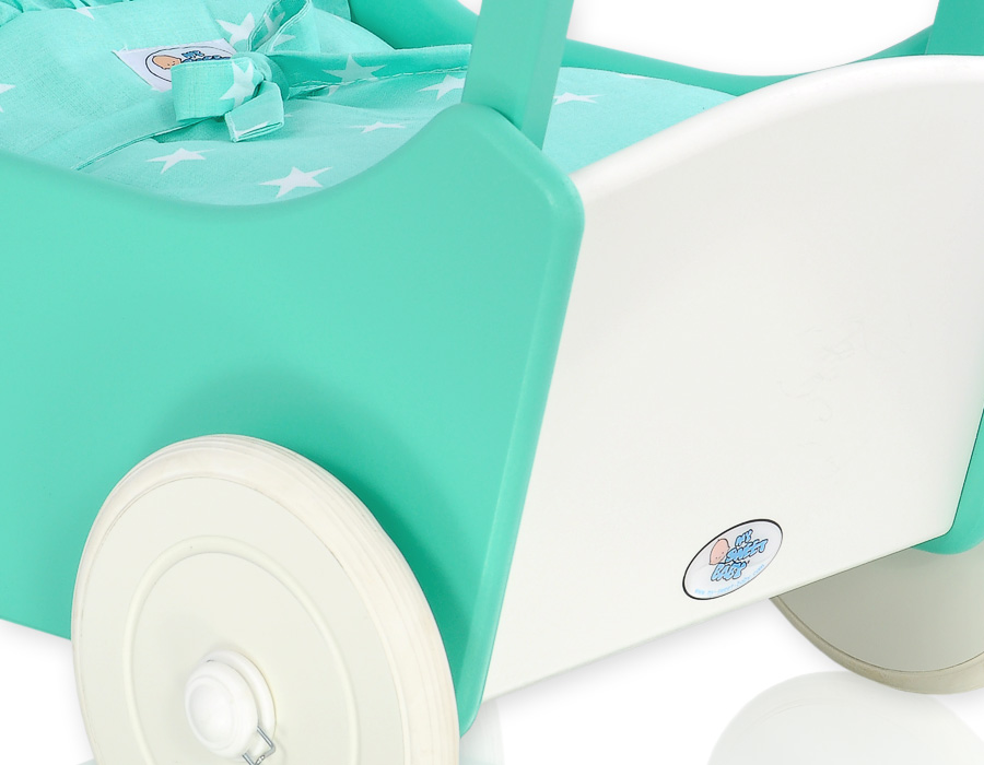 Puppenwagen Mila Weiß Minze 25026-717 Ein wundervoller Spiel - Puppenwagen perfekt als Geschenk geeignet.Der Wagen ist aus sicheren Materialien gefertigt.