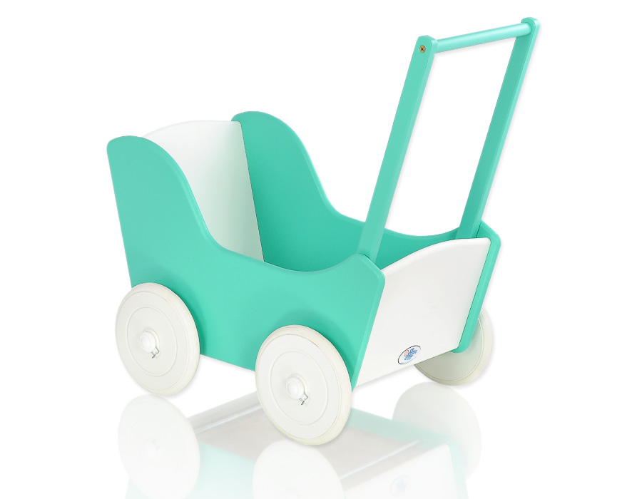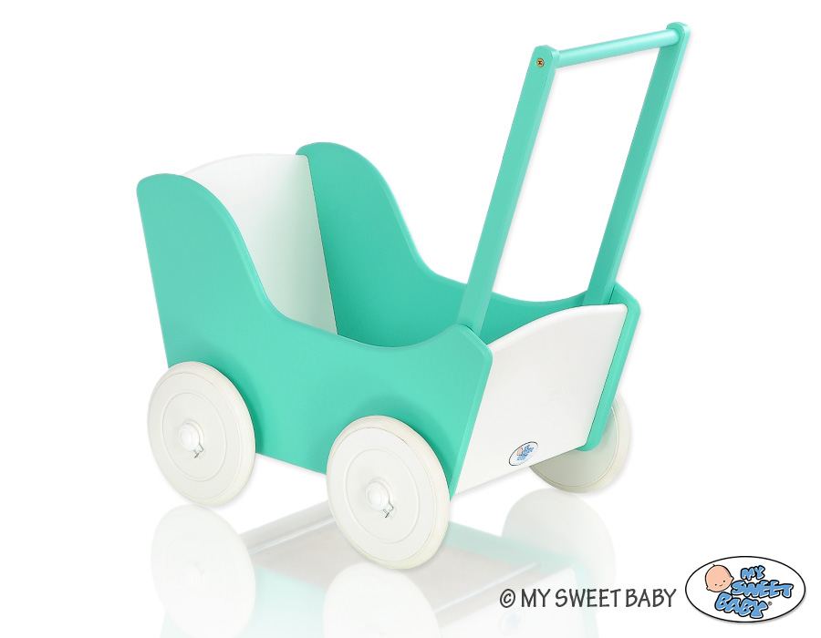 Stubenwagen » Spielzeug Kuscheltiere » Puppenwagen und Spielzeug » Puppenwagen aus Holz » Puppenwagen aus Holz Farbe Minze » Puppenwagen Mila Weiß Minze 25026