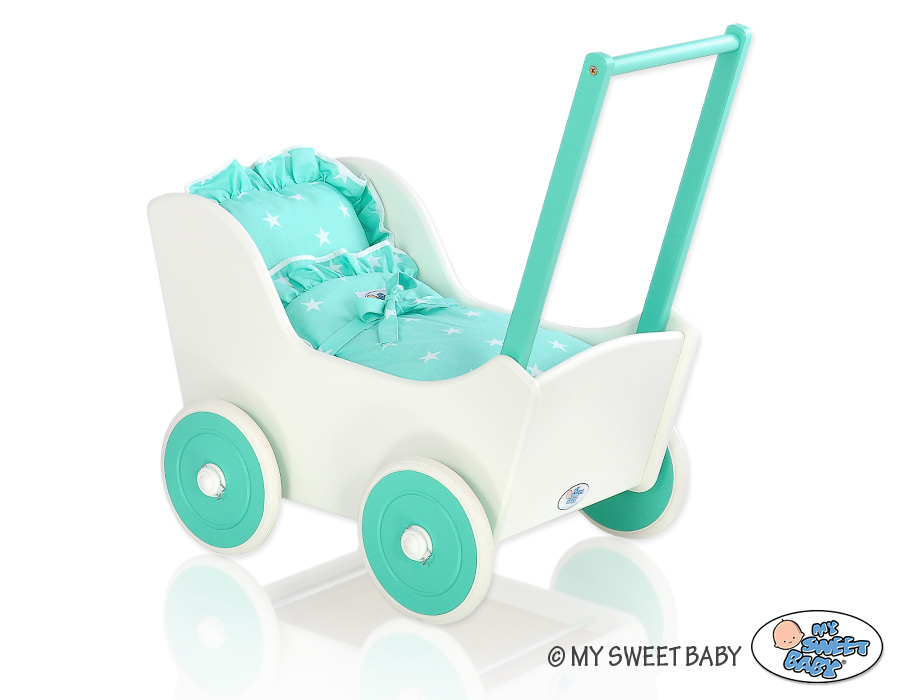Puppenwagen Mila Weiß Minze 25027-717 Ein wundervoller Spiel - Puppenwagen perfekt als Geschenk geeignet.Der Wagen ist aus sicheren Materialien gefertigt.
