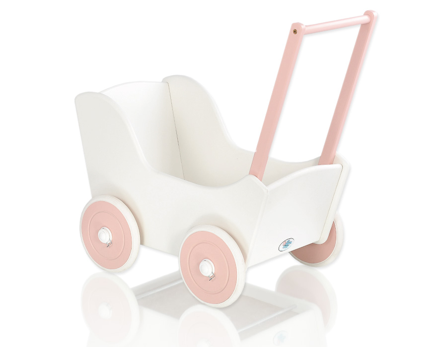 Puppenwagen aus Holz - Mila Weiß Puderrosa