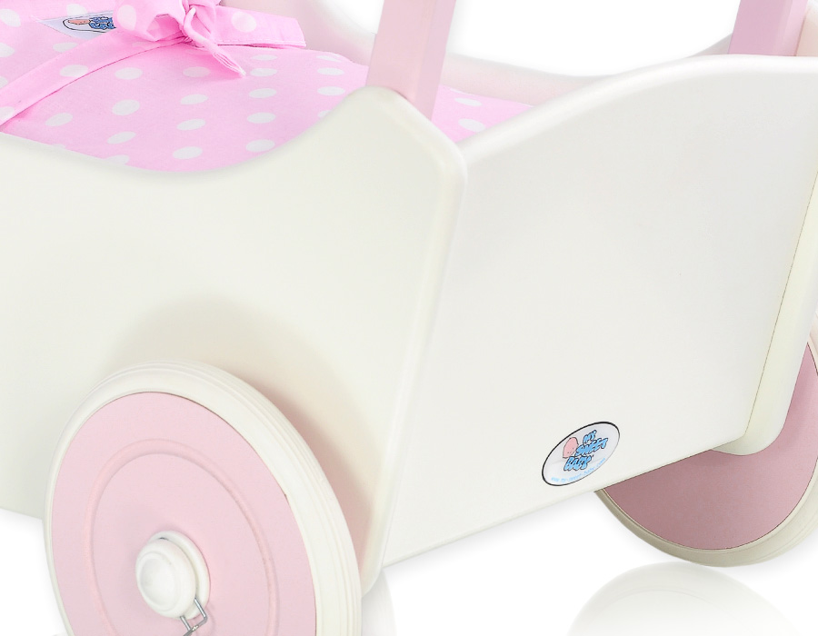 Puppenwagen aus Holz ab 1 Jahr - Mila Weiß Rosa