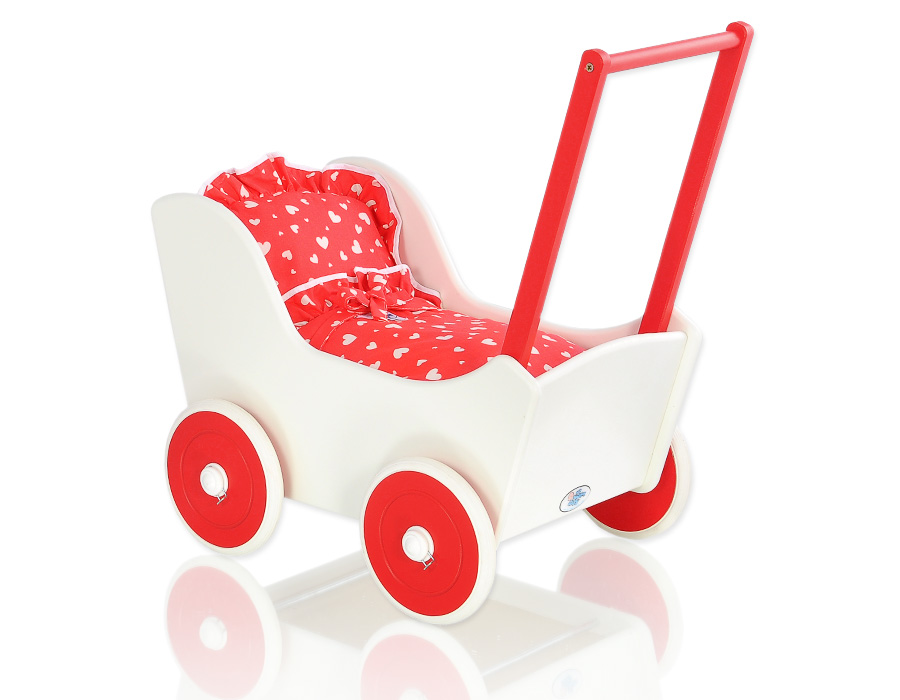 Stubenwagen » Spielzeug Kuscheltiere » Puppenwagen und Spielzeug » Puppenwagen aus Holz » Puppenwagen Holz Rot » Puppenwagen Mila Weiß Rot 125025-771