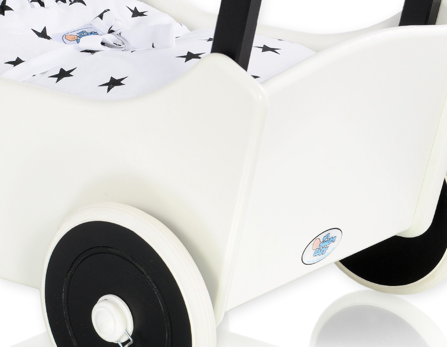 Puppenwagen Mila Weiß Schwarz 115025-739 Ein wundervoller Spiel - Puppenwagen perfekt als Geschenk geeignet.Der Wagen ist aus sicheren Materialien gefertigt.