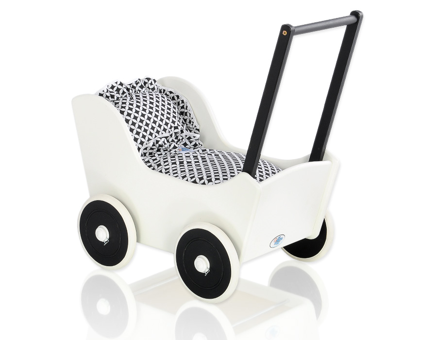 Puppenwagen Mila Weiß Schwarz 115025-746 Ein wundervoller Spiel - Puppenwagen perfekt als Geschenk geeignet.Der Wagen ist aus sicheren Materialien gefertigt.