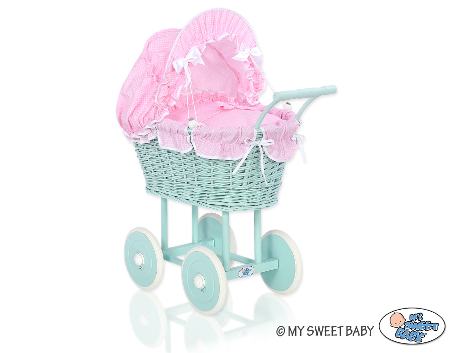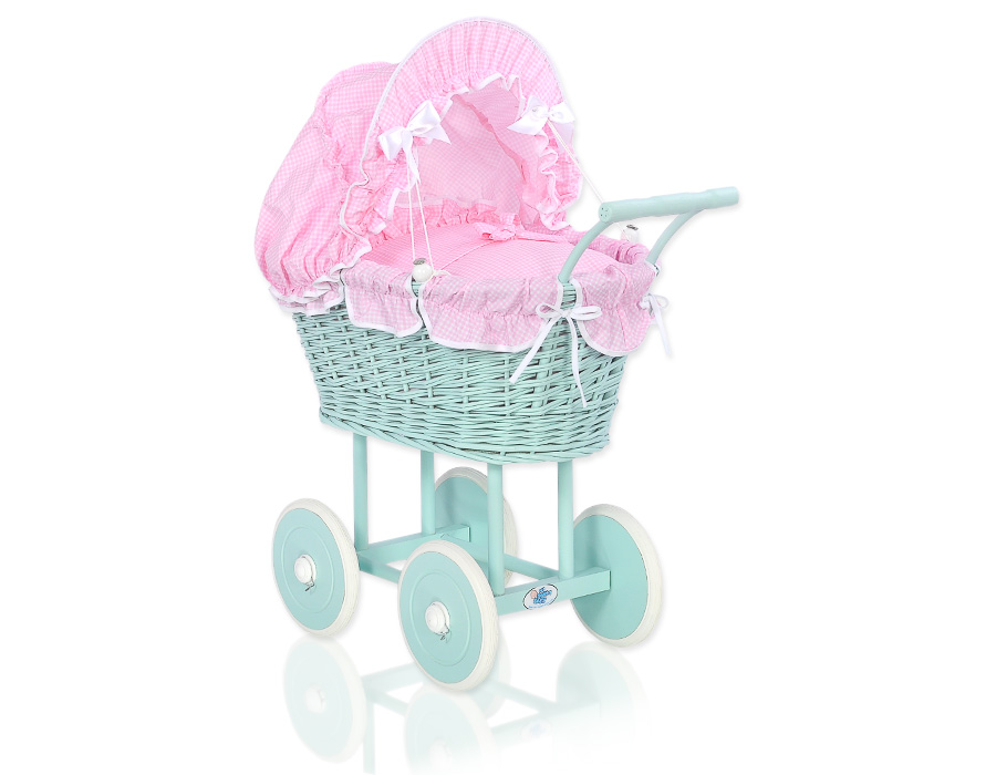 Stubenwagen » Spielzeug Kuscheltiere » Puppenwagen und Spielzeug » Puppenwagen aus Weide » Puppenwagen Minze Weidengeflecht Bettwäsche Rosa Kariert nr 21699-377