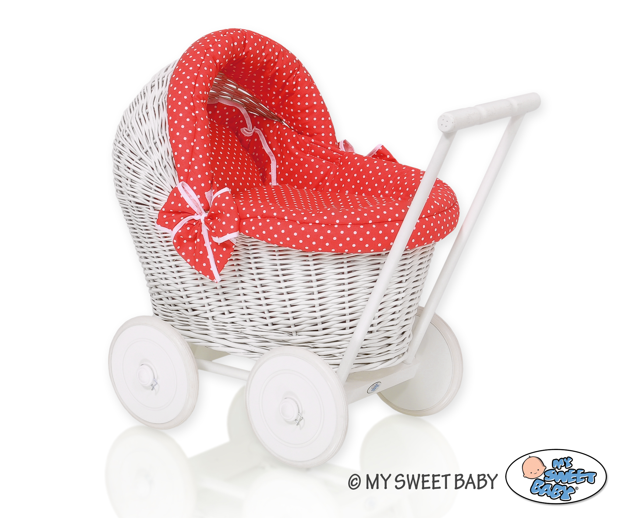 Eine wunderbare Geschenkidee für alle kleinen Mädchen. Sowohl der Korb aus Weide, als auch das Holzuntergestell entstehen in Handarbeit. Die Retropuppenwagen sind in vielen wunderschönen Farben verfügbar. Die sanften Pastelltöne des Puppenwagens ergeben eine wunderschöne Kombination mit den verschiedenen Farben der Bezüge. Dadurch sind unsere Puppenwagen wunderschönes Spielzeug und ein richtiges Hingucker.