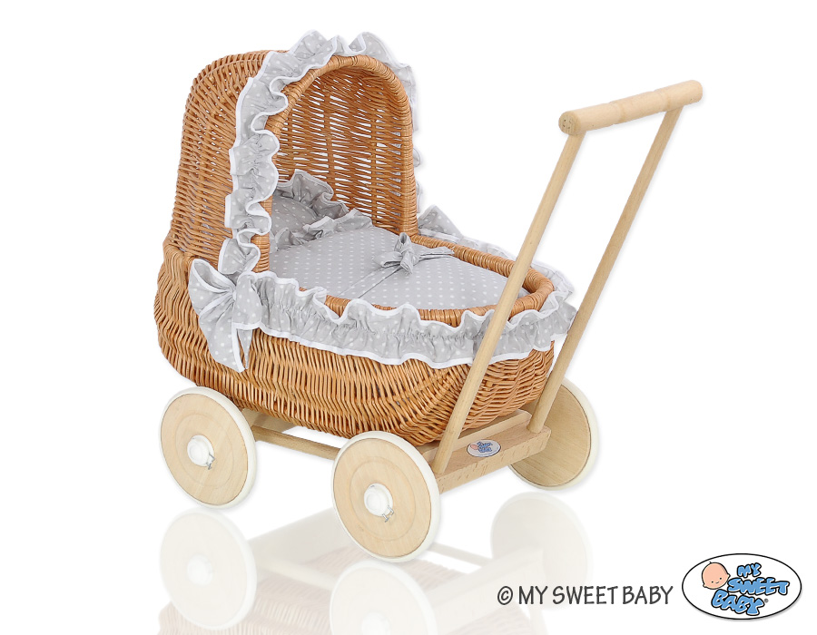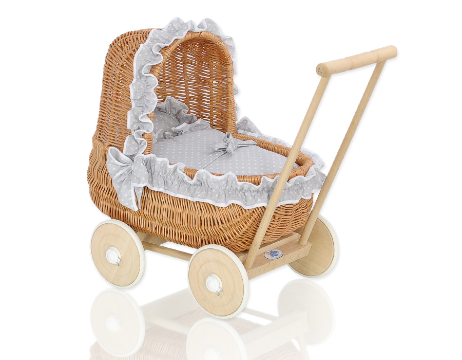 Eine wunderbare Geschenkidee für alle kleinen Mädchen. Sowohl der Korb aus Weide, als auch das Holzuntergestell entstehen in Handarbeit. Die Retropuppenwagen sind in vielen wunderschönen Farben verfügbar. Die sanften Pastelltöne des Puppenwagens ergeben eine wunderschöne Kombination mit den verschiedenen Farben der Bezüge. Dadurch sind unsere Puppenwagen wunderschönes Spielzeug und ein richtiges Hingucker.