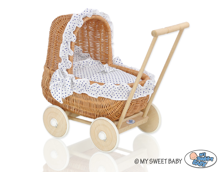 Eine wunderbare Geschenkidee für alle kleinen Mädchen. Sowohl der Korb aus Weide, als auch das Holzuntergestell entstehen in Handarbeit. Die Retropuppenwagen sind in vielen wunderschönen Farben verfügbar. Die sanften Pastelltöne des Puppenwagens ergeben eine wunderschöne Kombination mit den verschiedenen Farben der Bezüge. Dadurch sind unsere Puppenwagen wunderschönes Spielzeug und ein richtiges Hingucker.