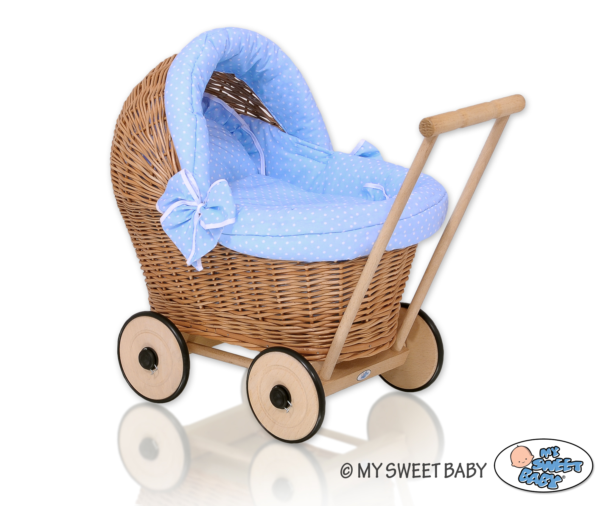 Eine wunderbare Geschenkidee für alle kleinen Mädchen. Sowohl der Korb aus Weide, als auch das Holzuntergestell entstehen in Handarbeit. Die Retropuppenwagen sind in vielen wunderschönen Farben verfügbar. Die sanften Pastelltöne des Puppenwagens ergeben eine wunderschöne Kombination mit den verschiedenen Farben der Bezüge. Dadurch sind unsere Puppenwagen wunderschönes Spielzeug und ein richtiges Hingucker.
