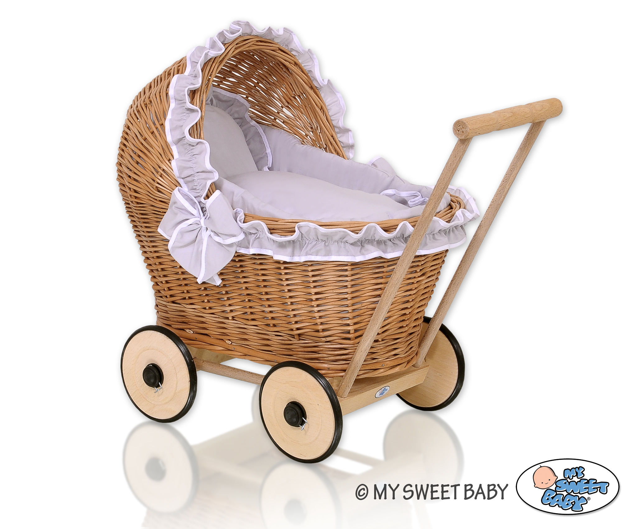 Eine wunderbare Geschenkidee für alle kleinen Mädchen. Sowohl der Korb aus Weide, als auch das Holzuntergestell entstehen in Handarbeit. Die Retropuppenwagen sind in vielen wunderschönen Farben verfügbar. Die sanften Pastelltöne des Puppenwagens ergeben eine wunderschöne Kombination mit den verschiedenen Farben der Bezüge. Dadurch sind unsere Puppenwagen wunderschönes Spielzeug und ein richtiges Hingucker.