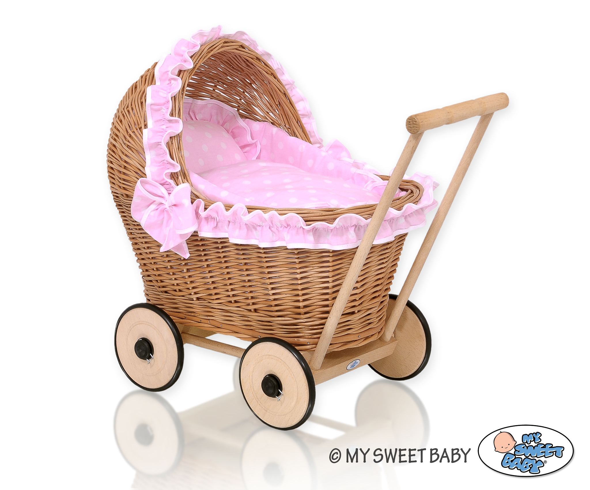 Eine wunderbare Geschenkidee für alle kleinen Mädchen. Sowohl der Korb aus Weide, als auch das Holzuntergestell entstehen in Handarbeit. Die Retropuppenwagen sind in vielen wunderschönen Farben verfügbar. Die sanften Pastelltöne des Puppenwagens ergeben eine wunderschöne Kombination mit den verschiedenen Farben der Bezüge. Dadurch sind unsere Puppenwagen wunderschönes Spielzeug und ein richtiges Hingucker.