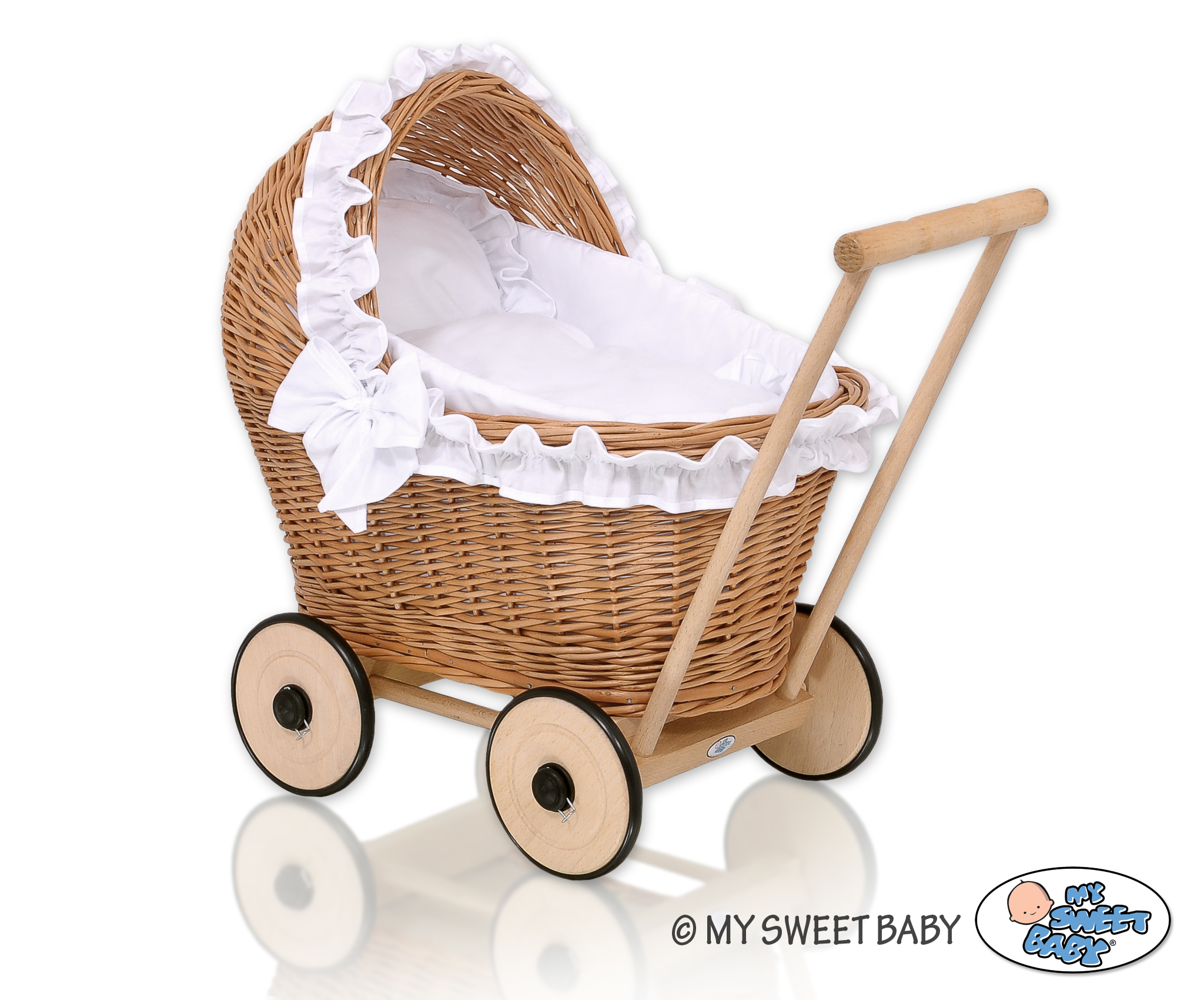 Stubenwagen » Spielzeug Kuscheltiere » Puppenwagen und Spielzeug » Puppenwagen aus Weide » Puppenwagen Weide Bettwäsche Weiß nr 1702-516