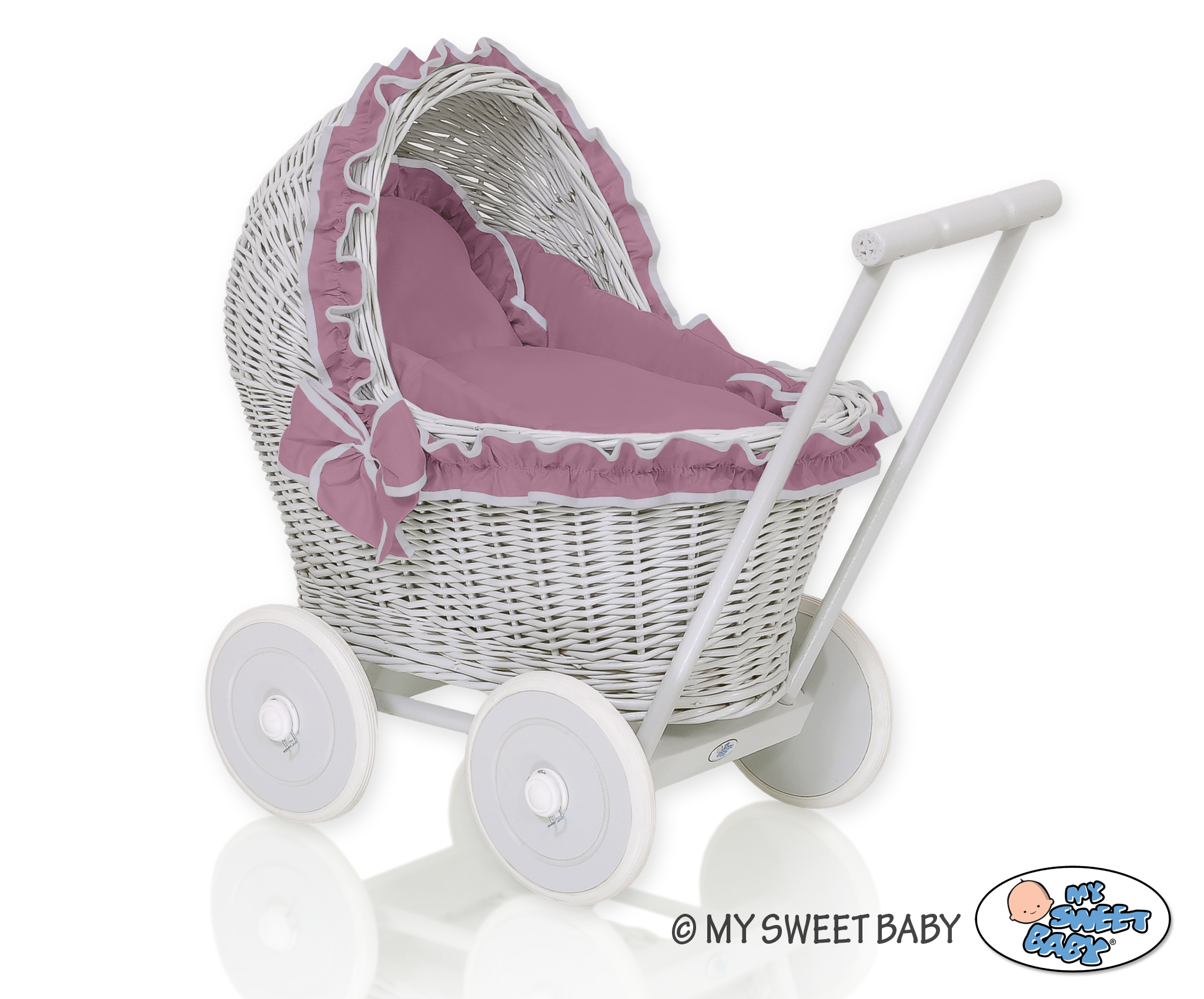 Eine wunderbare Geschenkidee für alle kleinen Mädchen. Sowohl der Korb aus Weide, als auch das Holzuntergestell entstehen in Handarbeit. Die Retropuppenwagen sind in vielen wunderschönen Farben verfügbar. Die sanften Pastelltöne des Puppenwagens ergeben eine wunderschöne Kombination mit den verschiedenen Farben der Bezüge. Dadurch sind unsere Puppenwagen wunderschönes Spielzeug und ein richtiges Hingucker.