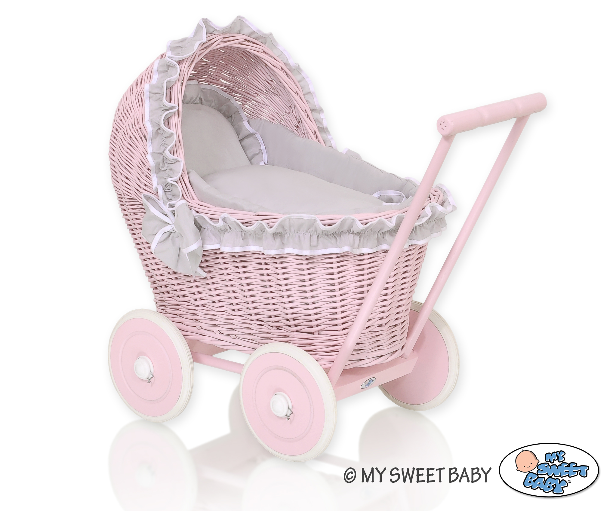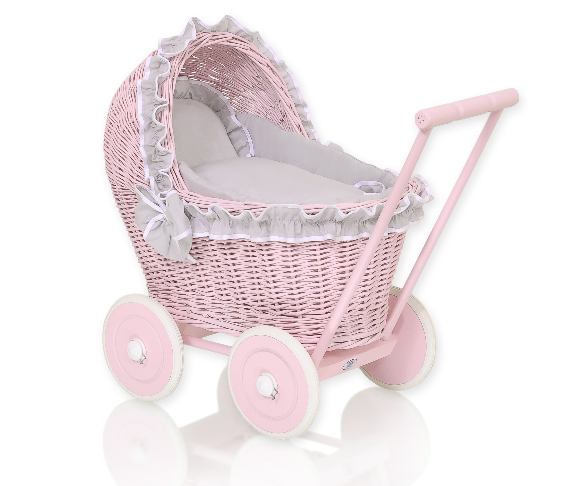 Stubenwagen » Spielzeug Kuscheltiere » Puppenwagen und Spielzeug » Puppenwagen aus Weide » Puppenwagen Weide Rosa Bettwäsche Grau nr 81702-523