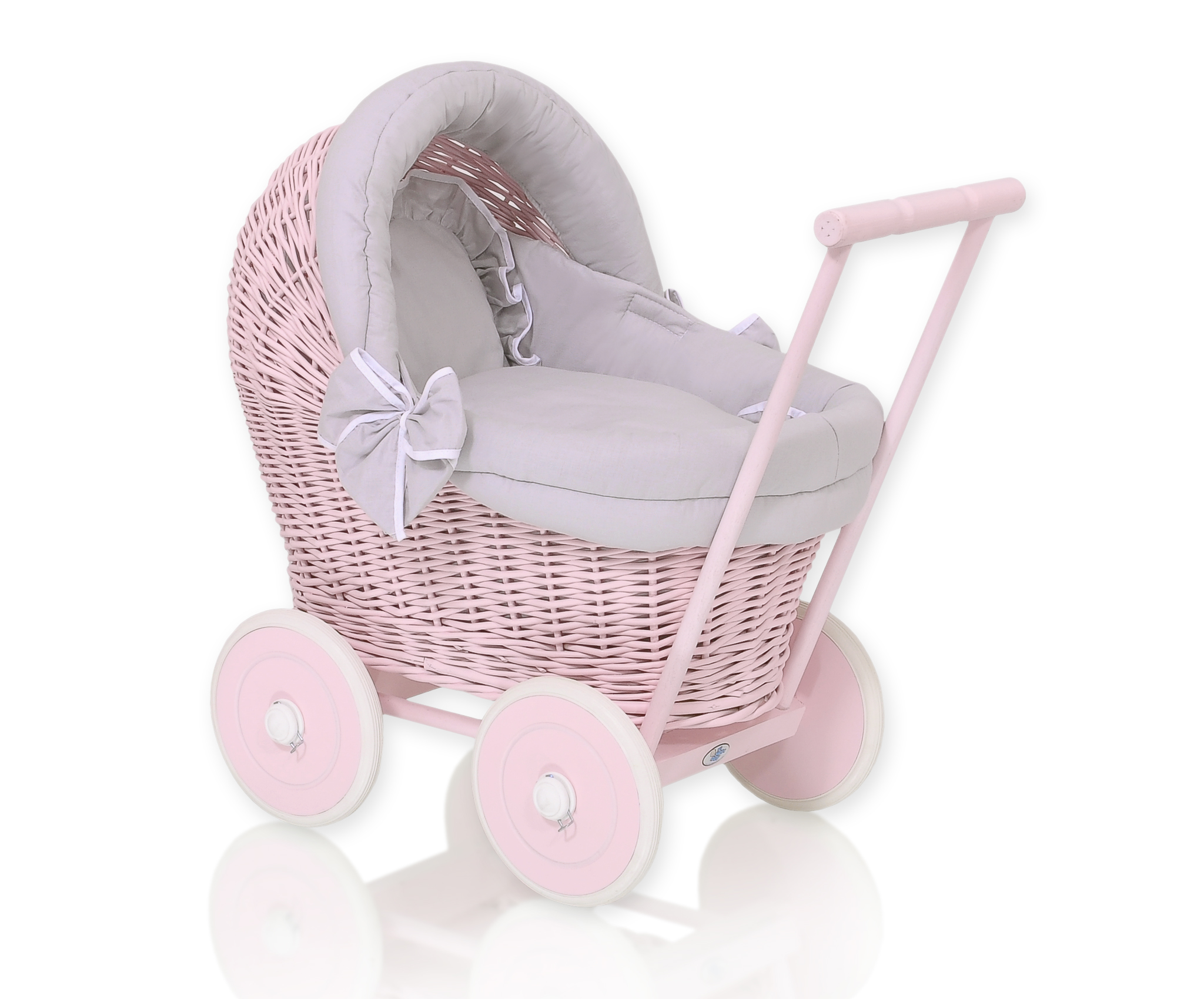 Stubenwagen » Spielzeug Kuscheltiere » Puppenwagen und Spielzeug » Puppenwagen aus Weide » Puppenwagen Weide Rosa Bettwäsche Grau nr 81703-523