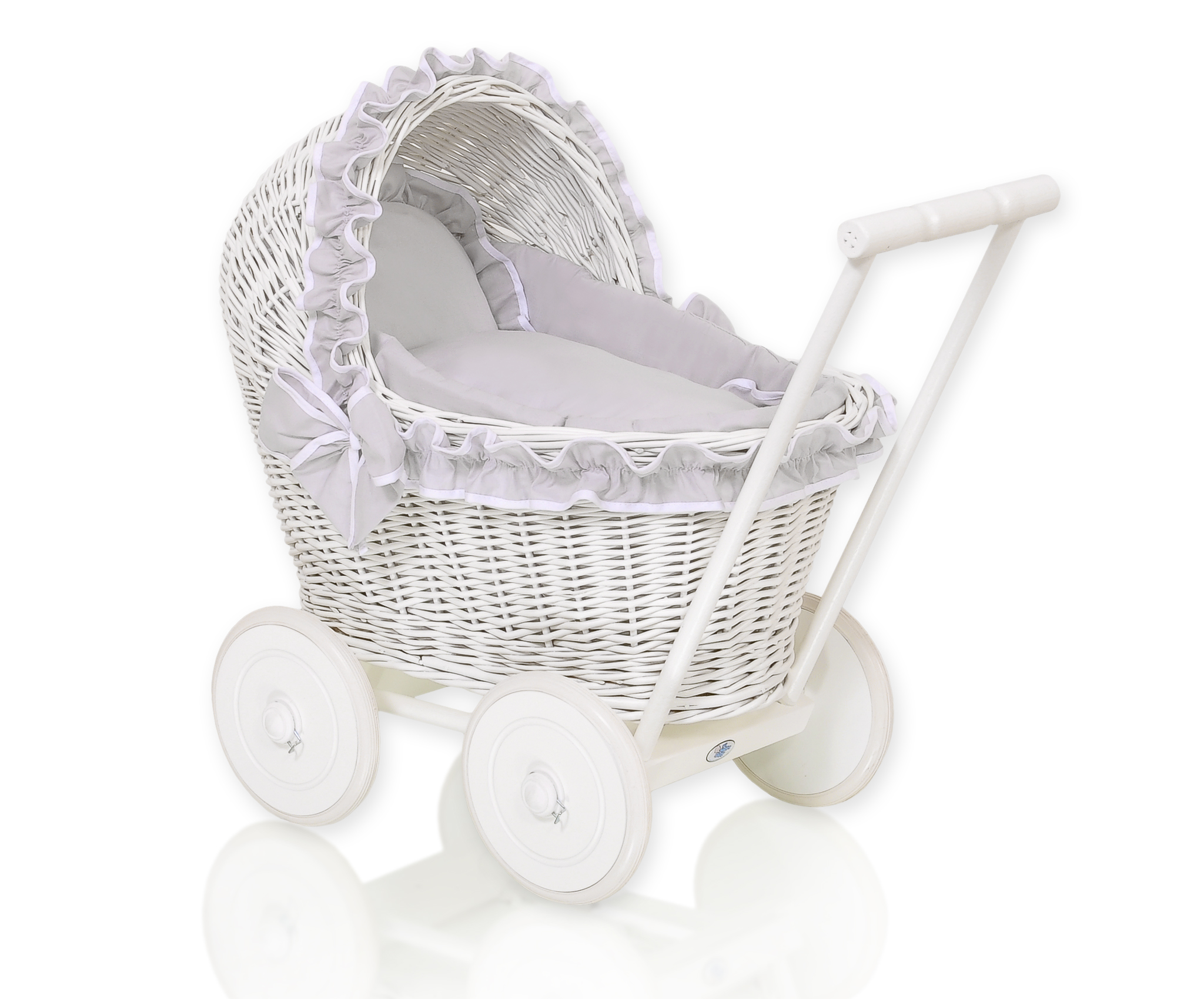 Stubenwagen » Spielzeug Kuscheltiere » Puppenwagen und Spielzeug » Puppenwagen aus Weide » Puppenwagen Weide Weiß Bettwäsche Bettset Grau nr 71702-523