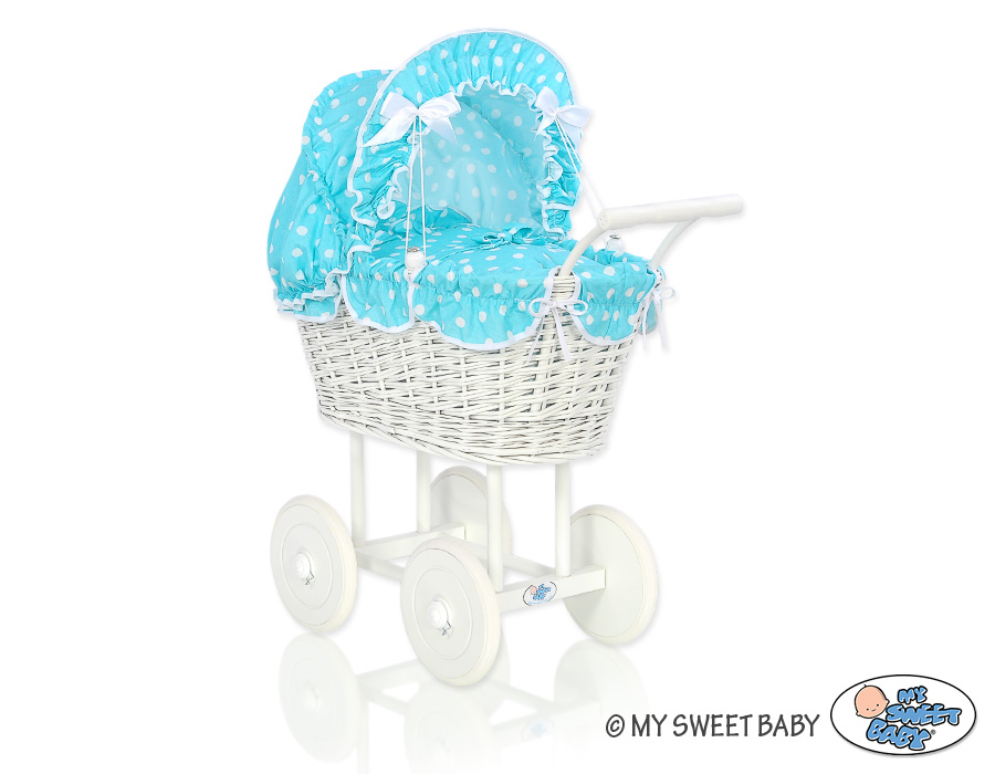 Stubenwagen » Spielzeug Kuscheltiere » Puppenwagen und Spielzeug » Puppenwagen aus Weide » Puppenwagen Weiße Weide Bettwäsche Türkis-Punktmuster nr 71699-552