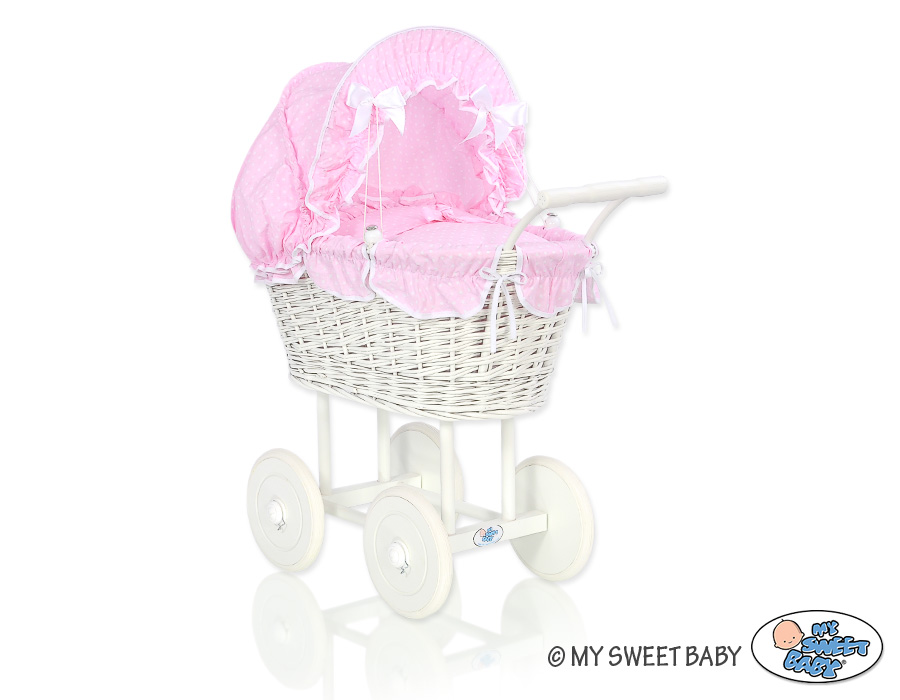 Stubenwagen » Spielzeug Kuscheltiere » Puppenwagen und Spielzeug » Puppenwagen aus Weide » Puppenwagen Weiße Weide Rosa mit Punktmuster Weiß nr 71699-530