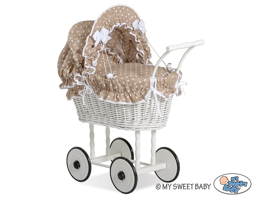 Stubenwagen » Spielzeug Kuscheltiere » Puppenwagen und Spielzeug » Puppenwagen aus Weide » Rattanpuppenwagen Weiß Braun Punktmuster nr 71699-584