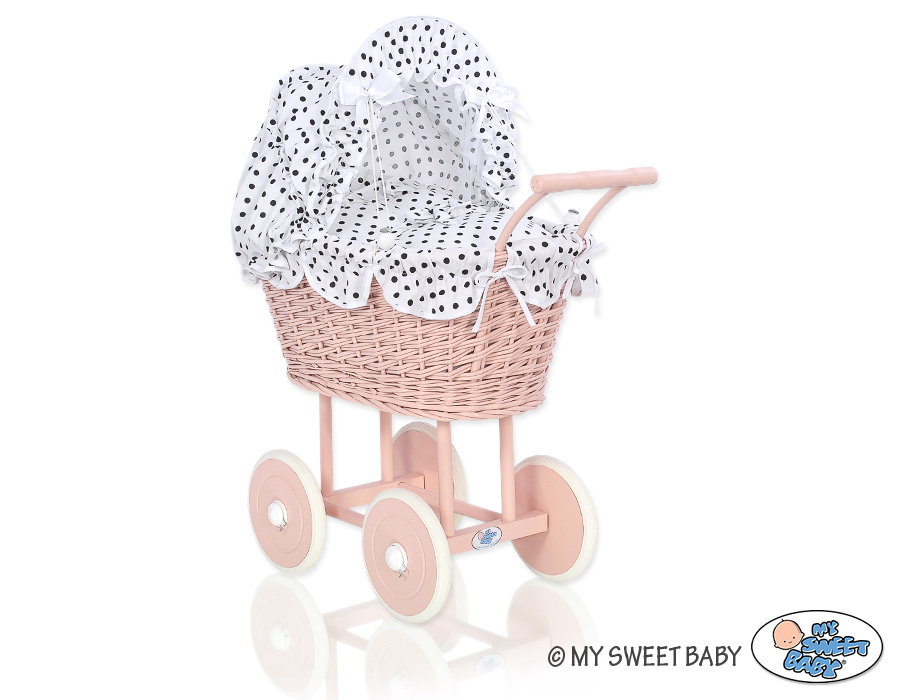 Retro Puppenwagen Puderrosa Rattan Bettwäsche Weiß mit Schwarz-Punktmuster nr 11699-738Retro Puppenwagen Puderrosa Rattan Bettwäsche Weiß mit Schwarz-Punktmuster nr 11699-738Retro Puppenwagen Puderrosa Rattan Bettwäsche Weiß mit Schwarz-Punktmuster nr 11699-738