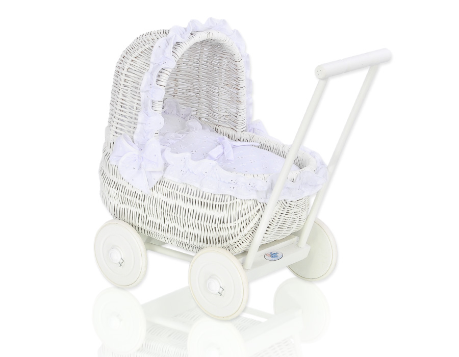 Eine wunderbare Geschenkidee für alle kleinen Mädchen. Sowohl der Korb aus Weide, als auch das Holzuntergestell entstehen in Handarbeit. Die Retropuppenwagen sind in vielen wunderschönen Farben verfügbar. Die sanften Pastelltöne des Puppenwagens ergeben eine wunderschöne Kombination mit den verschiedenen Farben der Bezüge. Dadurch sind unsere Puppenwagen wunderschönes Spielzeug, Lauflernhilfe und ein richtiges Hingucker.