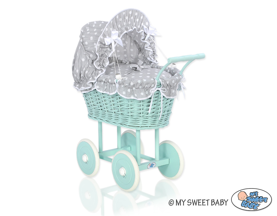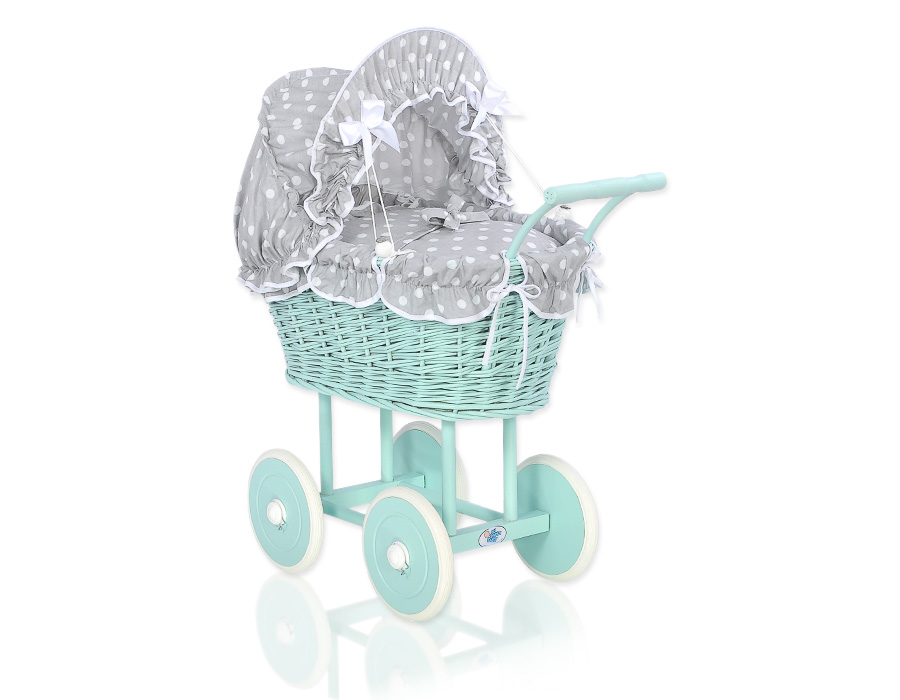 Eine wunderbare Geschenkidee für alle kleinen Mädchen. Sowohl der Korb aus Weide, als auch das Holzuntergestell entstehen in Handarbeit. Die Retropuppenwagen sind in vielen wunderschönen Farben verfügbar. Die sanften Pastelltöne des Puppenwagens ergeben eine wunderschöne Kombination mit den verschiedenen Farben der Bezüge. Dadurch sind unsere Puppenwagen wunderschönes Spielzeug und ein richtiges Hingucker.