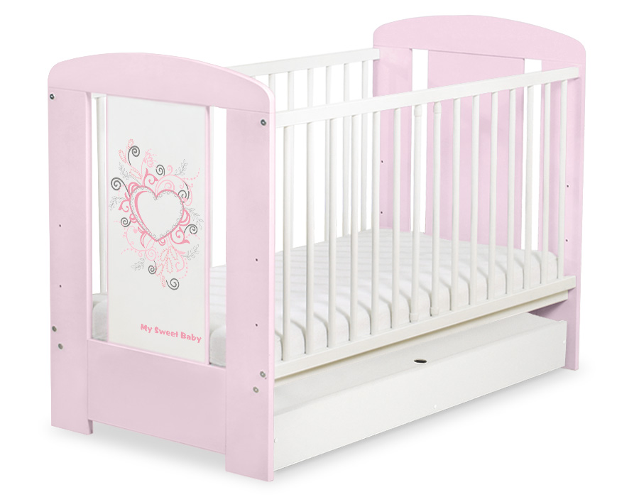 Stubenwagen » Babybett 60x120 cm » Babybetten 120x60cm mit Schublade » Babybett mit Schublade 60x120 Chic » Rosa Babybett 120x60cm Chic mit Schublade STANDARD