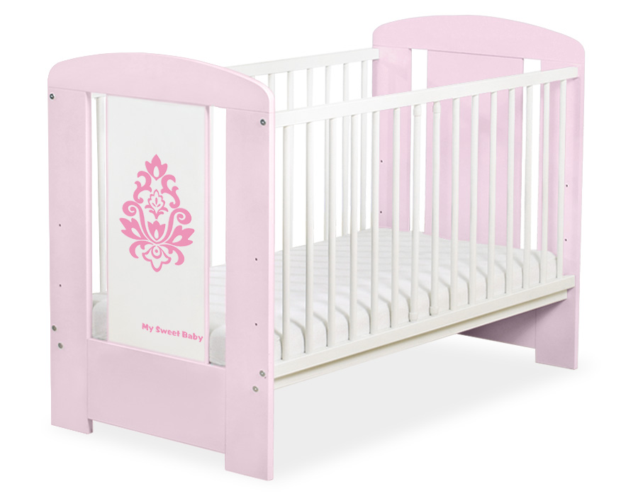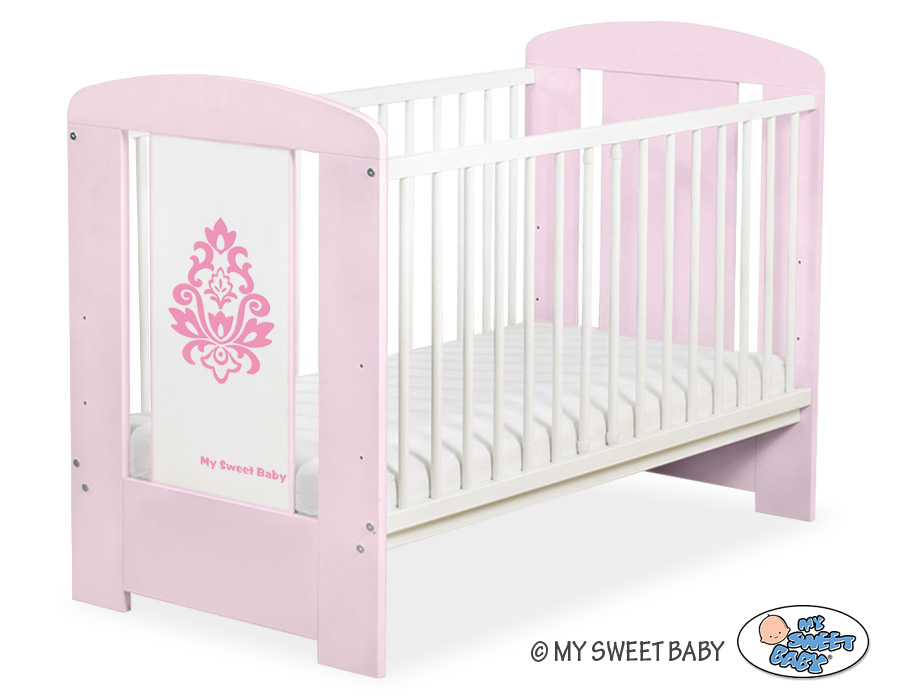 Stubenwagen » Babybett 60x120 cm » Babybett 60x120 Glamour » Rosa Babybett 120x60cm Glamour mit Grau Graphik
