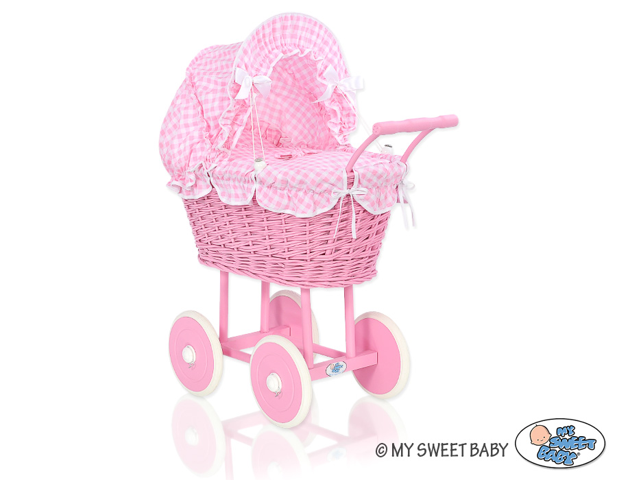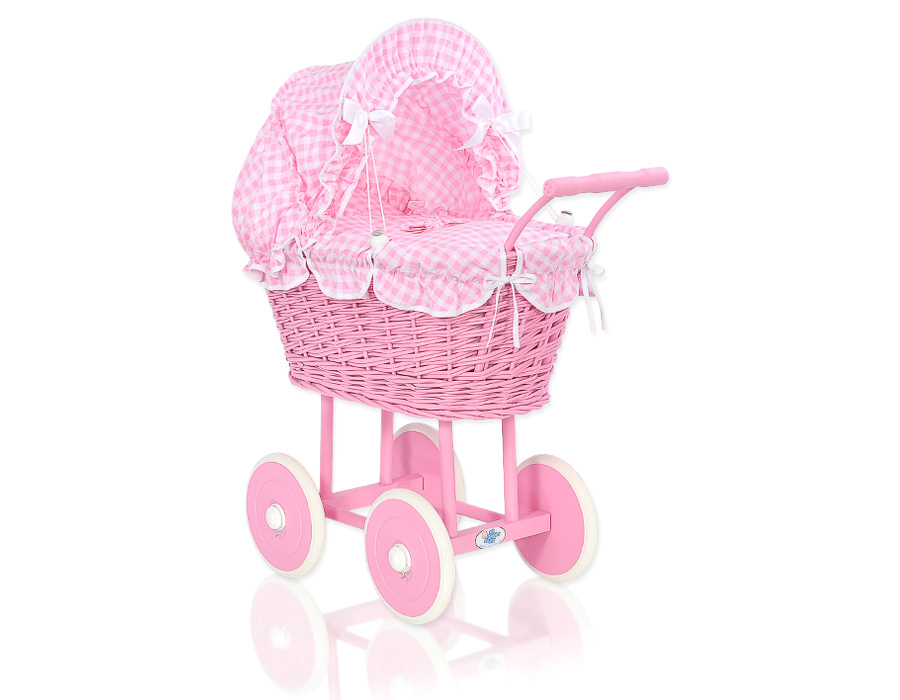 Stubenwagen » Spielzeug Kuscheltiere » Puppenwagen und Spielzeug » Puppenwagen aus Weide » Rosa Weide Puppenwagen Bettwäsche Rosa Kariert nr 51699-384