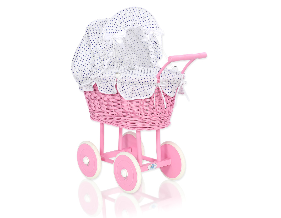 Eine wunderbare Geschenkidee für alle kleinen Mädchen. Sowohl der Korb aus Weide, als auch das Holzuntergestell entstehen in Handarbeit. Die Retropuppenwagen sind in vielen wunderschönen Farben verfügbar. Die sanften Pastelltöne des Puppenwagens ergeben eine wunderschöne Kombination mit den verschiedenen Farben der Bezüge. Dadurch sind unsere Puppenwagen wunderschönes Spielzeug und ein richtiges Hingucker.
