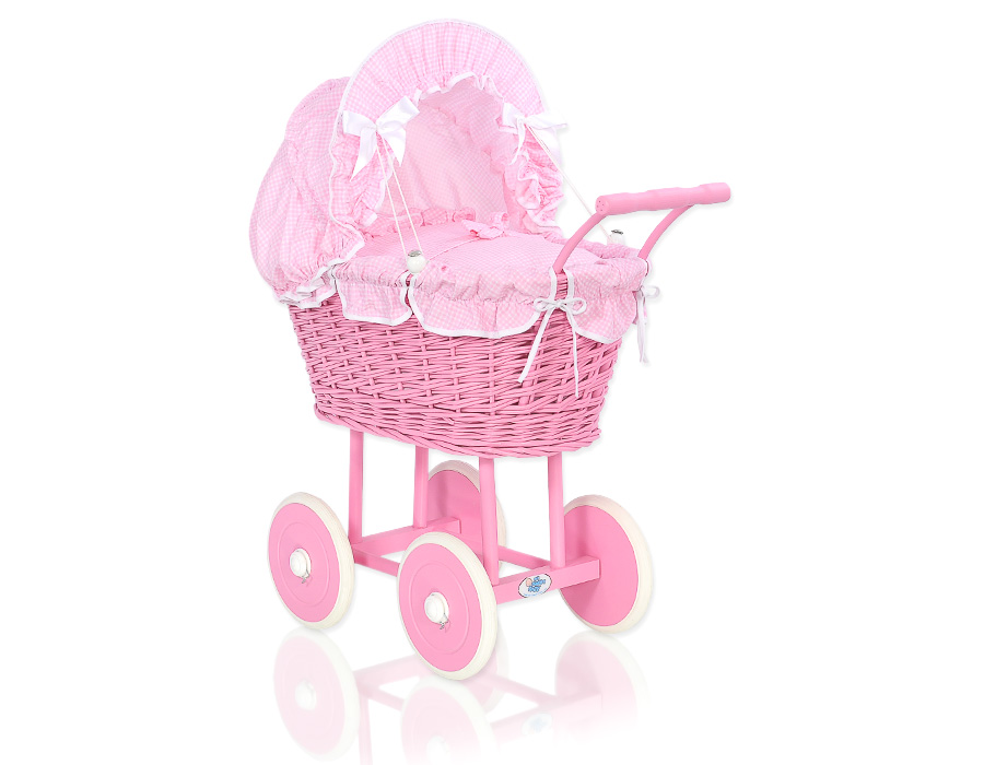 Stubenwagen » Spielzeug Kuscheltiere » Puppenwagen und Spielzeug » Puppenwagen aus Weide » Rosa Weide Puppenwagen nr 51699-377
