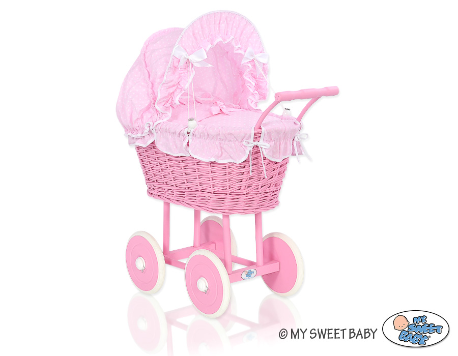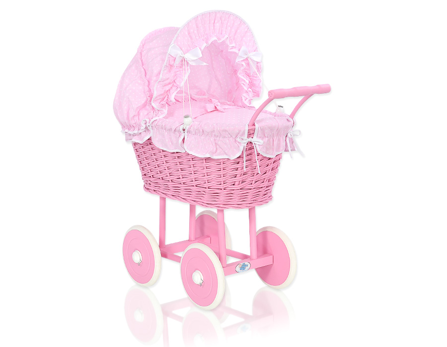Stubenwagen » Spielzeug Kuscheltiere » Puppenwagen und Spielzeug » Puppenwagen aus Weide » Rosa Weide Puppenwagen Rosa mit Punktmuster Weiß nr 51699-530