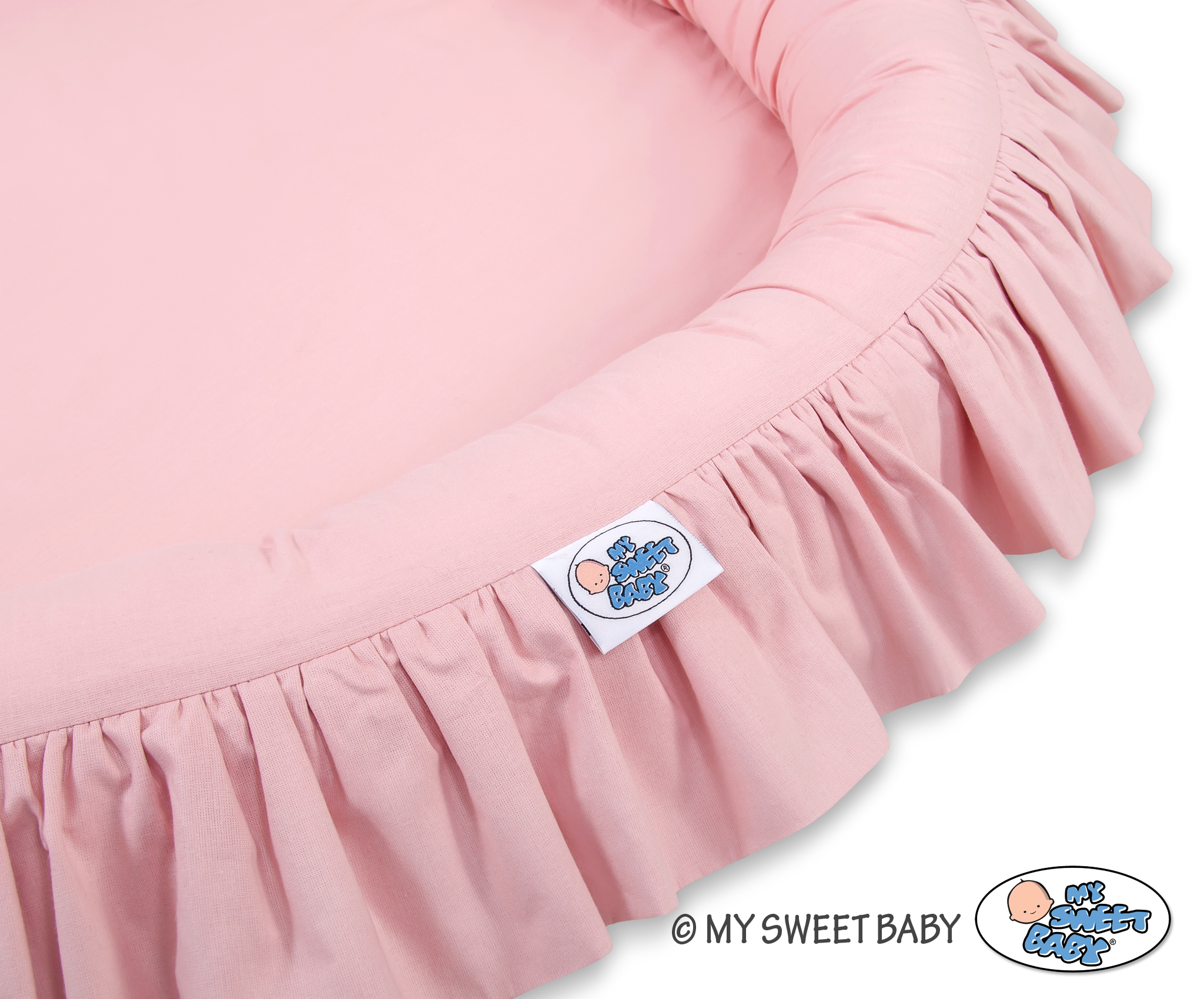 Der Boden des Rüschennestchens ist mit einem weichen Inlett aus antiallergischem Gewebe ausgestattet. Das Inlett ist rausnehmbar. Der Bezug kann bei 30 Grad gewaschen werden.