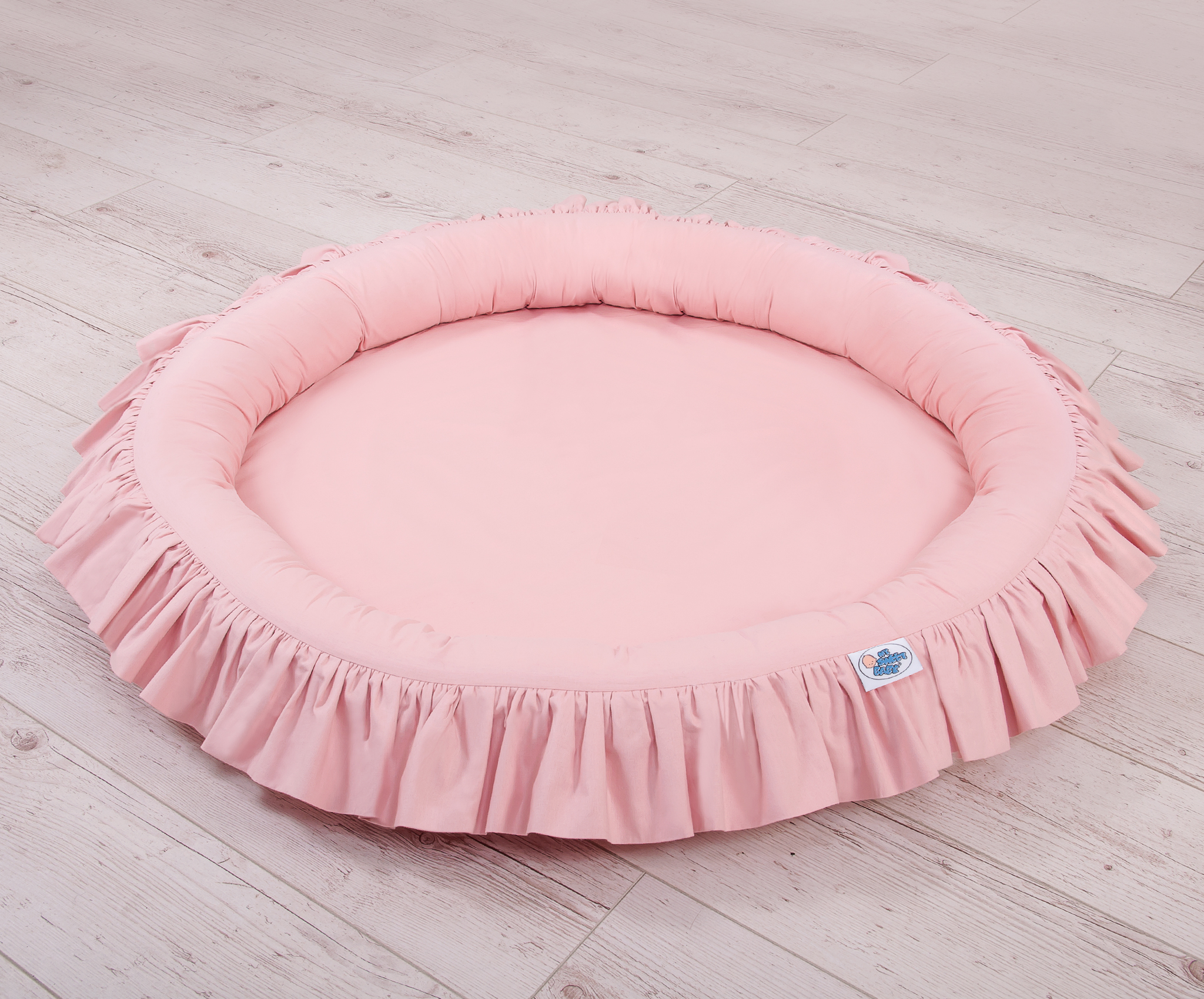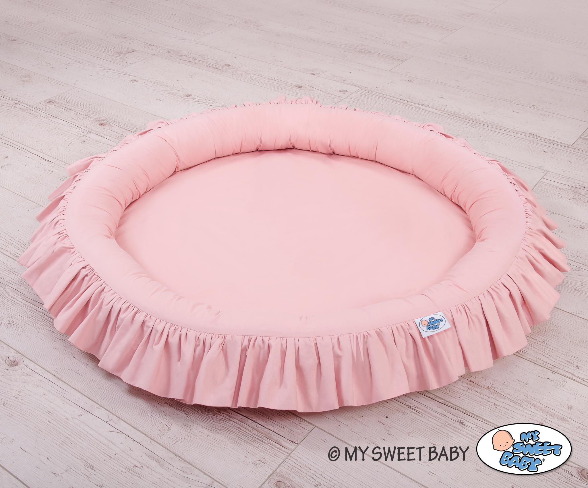 Ein Nestchen mit Rüsche. Ein funktionelles und praktisches Spielnestchen. Es eignet sich hervorragend als Spielplatz, oder auch als Boden für den langen Himmel. Das Rüschennestchen kann seit den ersten Lebenstagen als ein sicherer Liegeplatz genutzt werden. Die weichen Nestchenränder bieten Sicherheit für Kleinkinder. Es ist perfekt als ein Spielplatz, wo viele Spielsachen ihren Platz finden. Mit dem langen Himmel kombiniert erschafft das Rüschennestchen ein wunderschönes Spielzelt.