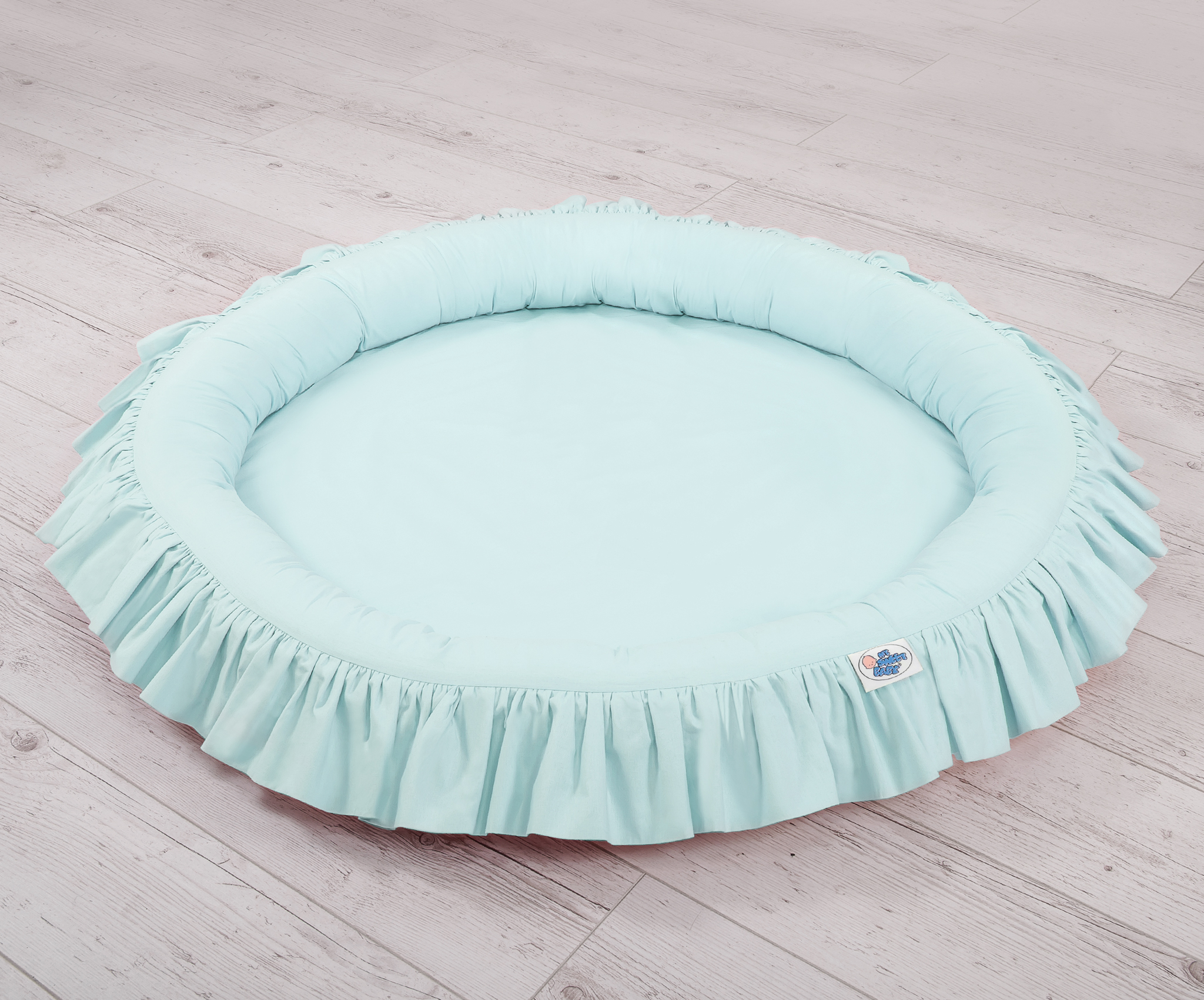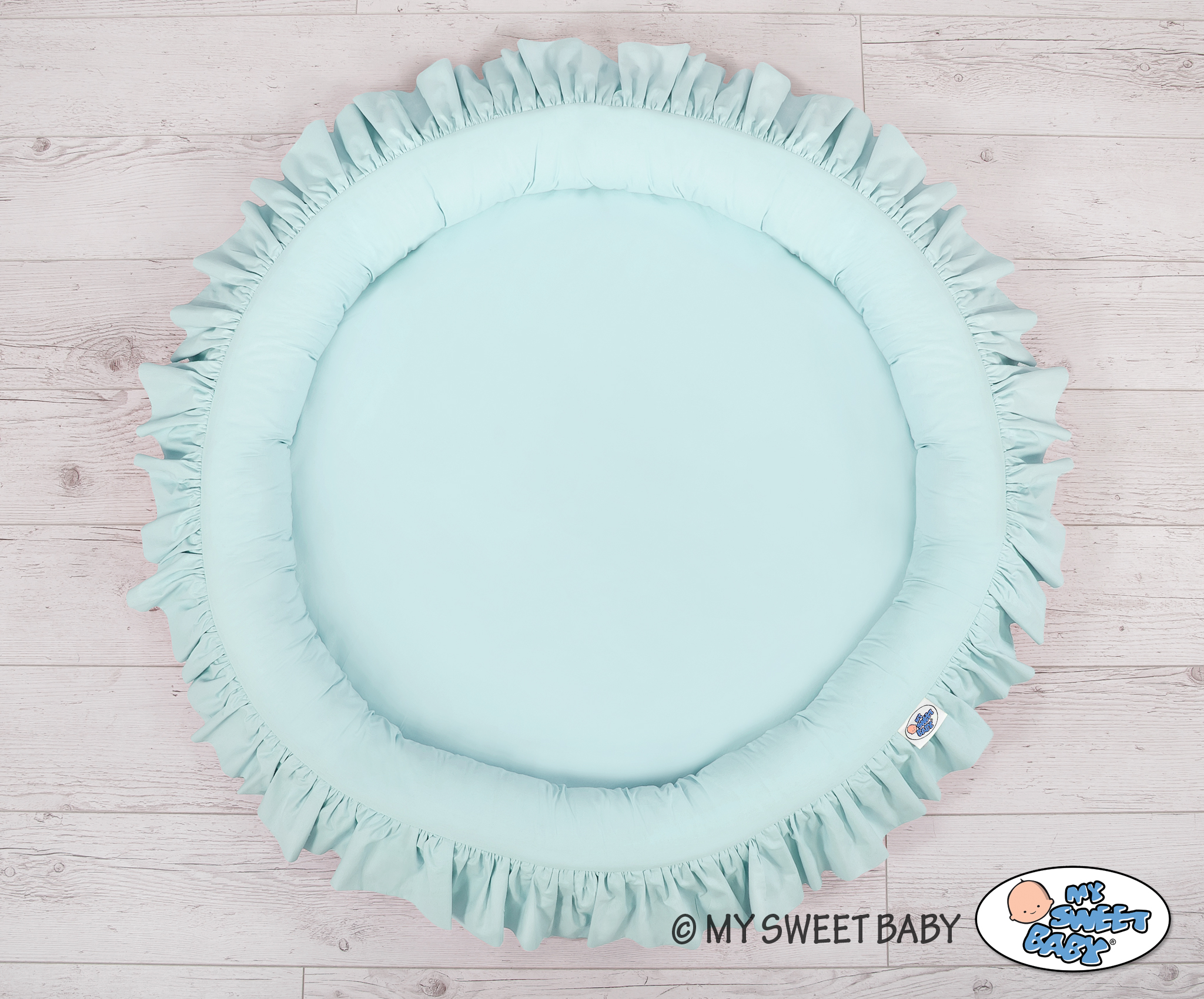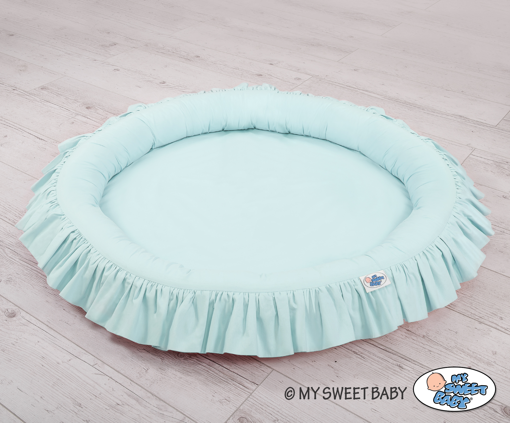 Ein Nestchen mit Rüsche. Ein funktionelles und praktisches Spielnestchen. Es eignet sich hervorragend als Spielplatz, oder auch als Boden für den langen Himmel. Das Rüschennestchen kann seit den ersten Lebenstagen als ein sicherer Liegeplatz genutzt werden. Die weichen Nestchenränder bieten Sicherheit für Kleinkinder. Es ist perfekt als ein Spielplatz, wo viele Spielsachen ihren Platz finden. Mit dem langen Himmel kombiniert erschafft das Rüschennestchen ein wunderschönes Spielzelt.