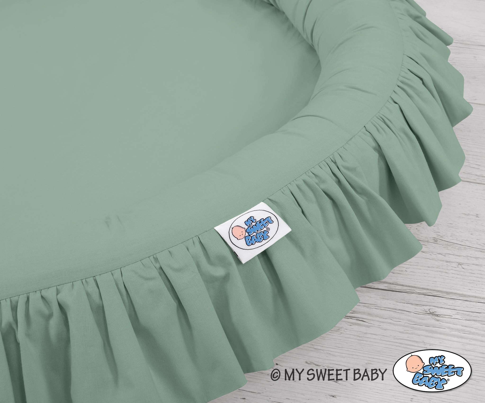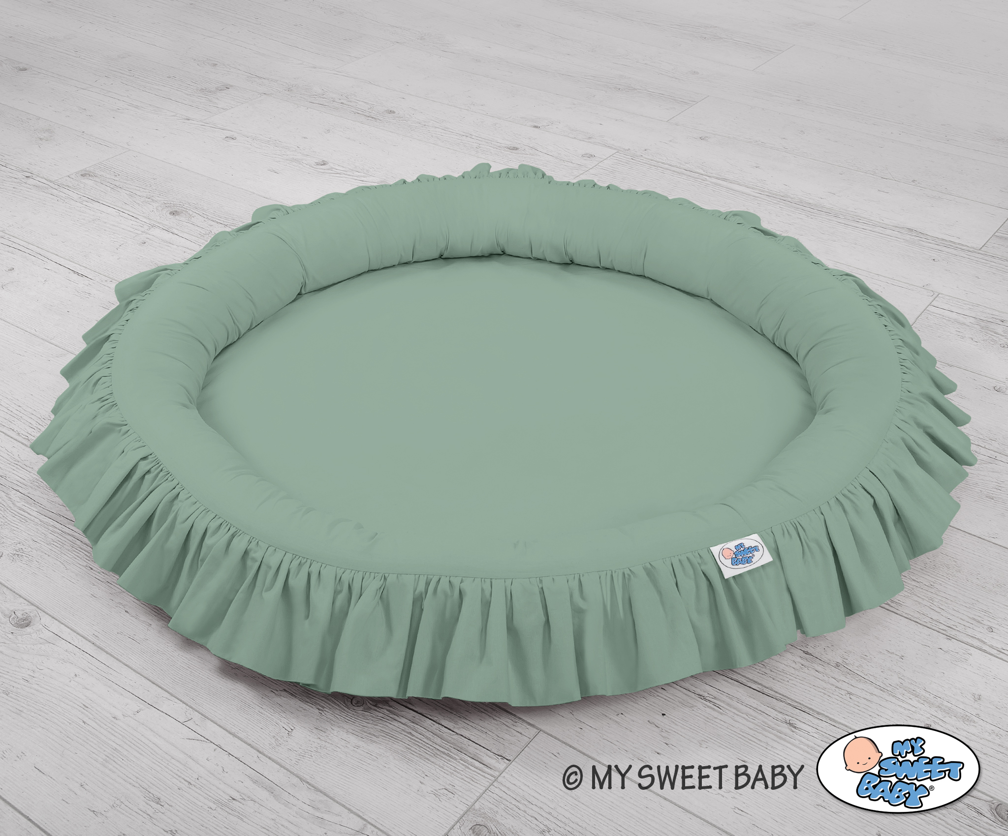 Ein Nestchen mit Rüsche. Ein funktionelles und praktisches Spielnestchen. Es eignet sich hervorragend als Spielplatz, oder auch als Boden für den langen Himmel. Das Rüschennestchen kann seit den ersten Lebenstagen als ein sicherer Liegeplatz genutzt werden. Die weichen Nestchenränder bieten Sicherheit für Kleinkinder. Es ist perfekt als ein Spielplatz, wo viele Spielsachen ihren Platz finden. Mit dem langen Himmel kombiniert erschafft das Rüschennestchen ein wunderschönes Spielzelt.
