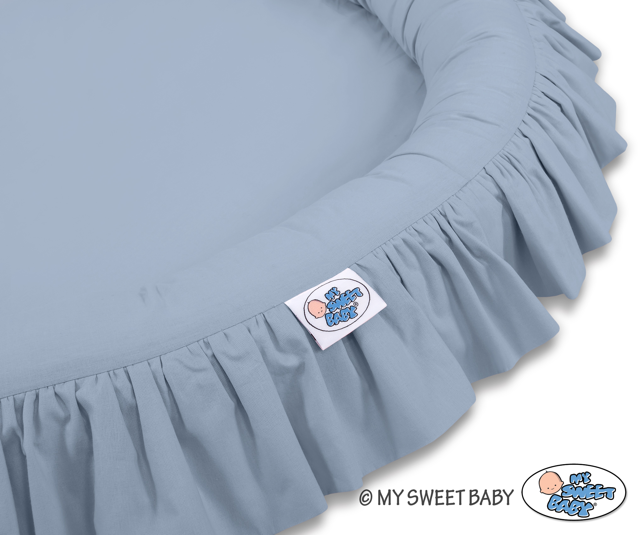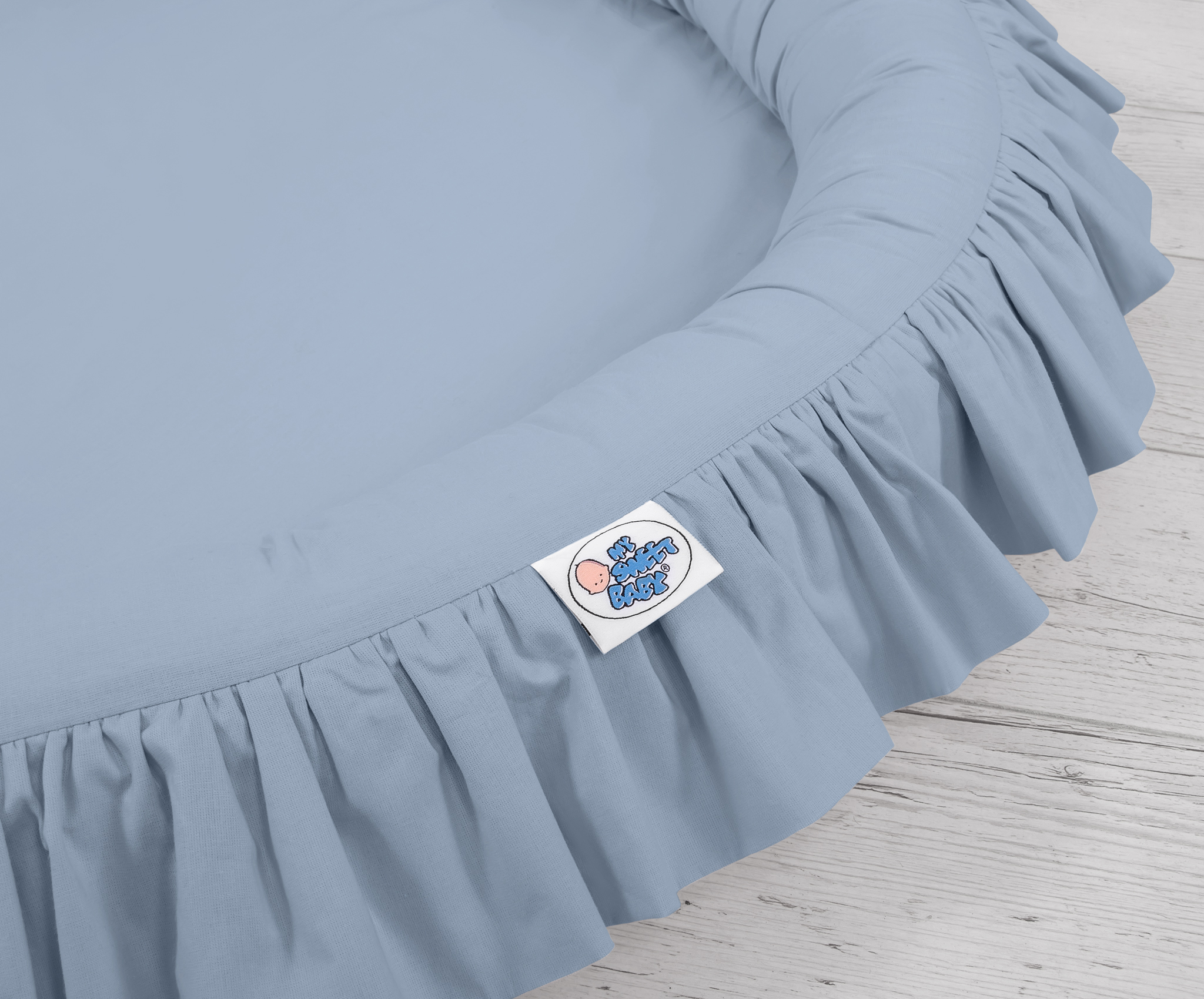 Der Boden des Rüschennestchens ist mit einem weichen Inlett aus antiallergischem Gewebe ausgestattet. Das Inlett ist rausnehmbar. Der Bezug kann bei 30 Grad gewaschen werden.