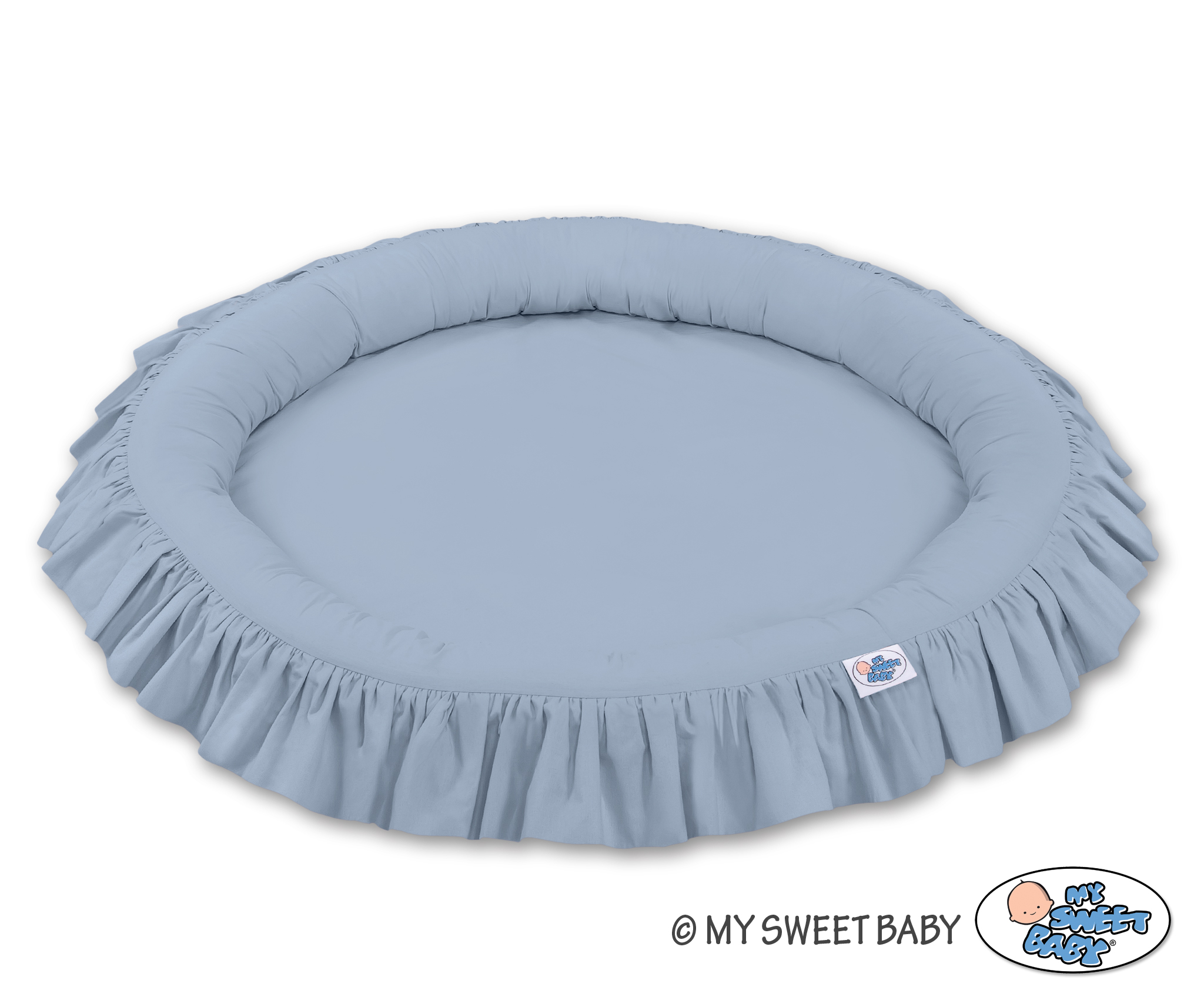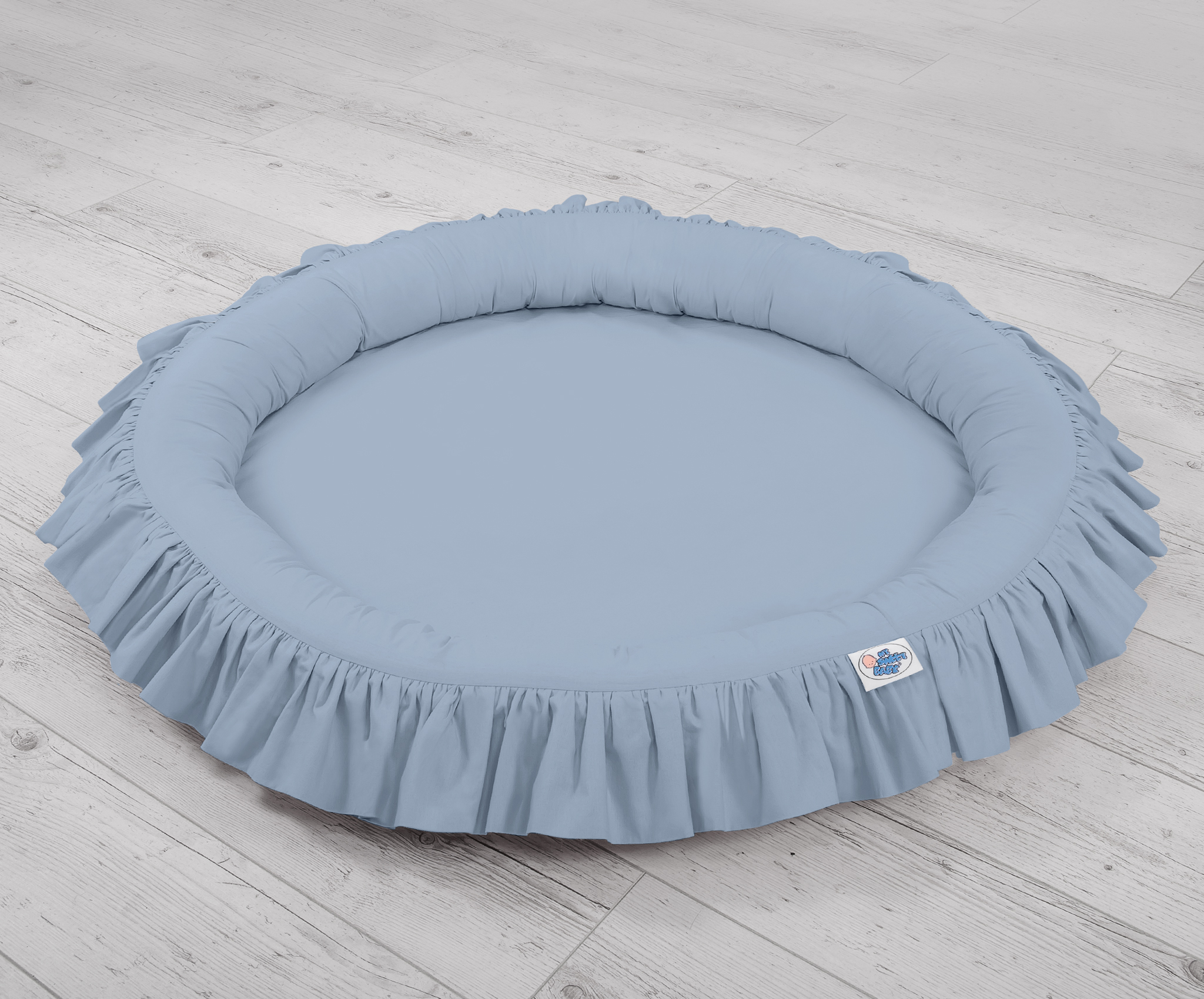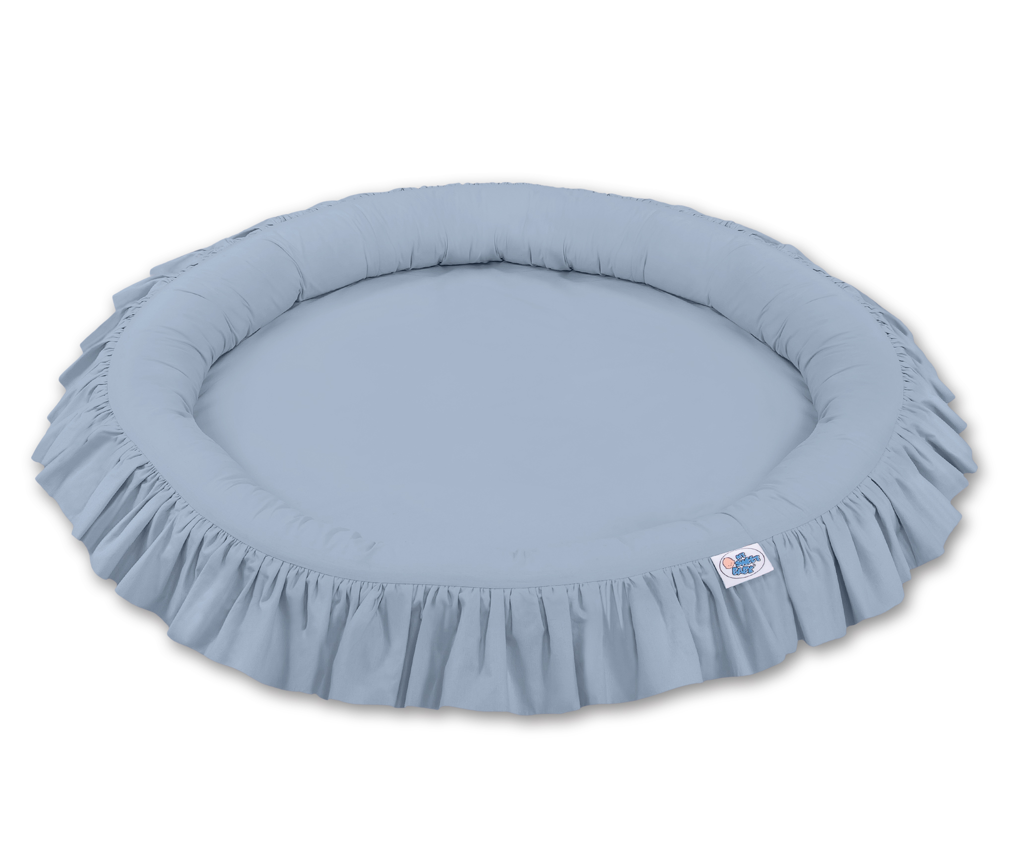 Ein Nestchen mit Rüsche. Ein funktionelles und praktisches Spielnestchen. Es eignet sich hervorragend als Spielplatz, oder auch als Boden für den langen Himmel. Das Rüschennestchen kann seit den ersten Lebenstagen als ein sicherer Liegeplatz genutzt werden. Die weichen Nestchenränder bieten Sicherheit für Kleinkinder. Es ist perfekt als ein Spielplatz, wo viele Spielsachen ihren Platz finden. Mit dem langen Himmel kombiniert erschafft das Rüschennestchen ein wunderschönes Spielzelt.